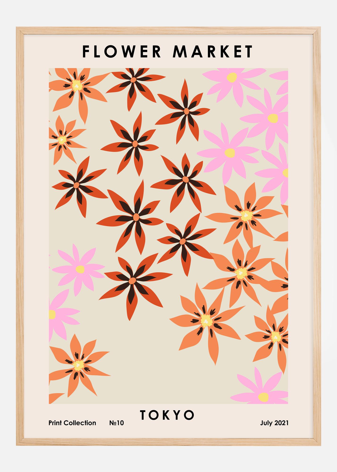 Αυτή η ζωντανή αφίσα αιχμαλωτίζει την ουσία μιας ανθοκομικής αγοράς στο Τόκιο με το ζωντανό μοτίβο των λουλουδιών σε κοραλί, μαύρο και ροζ πάνω σε ανοιχτό μπεζ φόντο. Αυτή η αφίσα προσδίδει μια παιχνιδιάρικη και σύγχρονη αίσθηση που εμπλουτίζει κάθε δωμάτιο με την αισθητική της γοητεία. Κάθε λουλούδι είναι απλό αλλά καλλιτεχνικά αποδοσμένο, με αποχρώσεις που προσδίδουν μια αίσθηση βάθους και διάστασης στο σχέδιο.