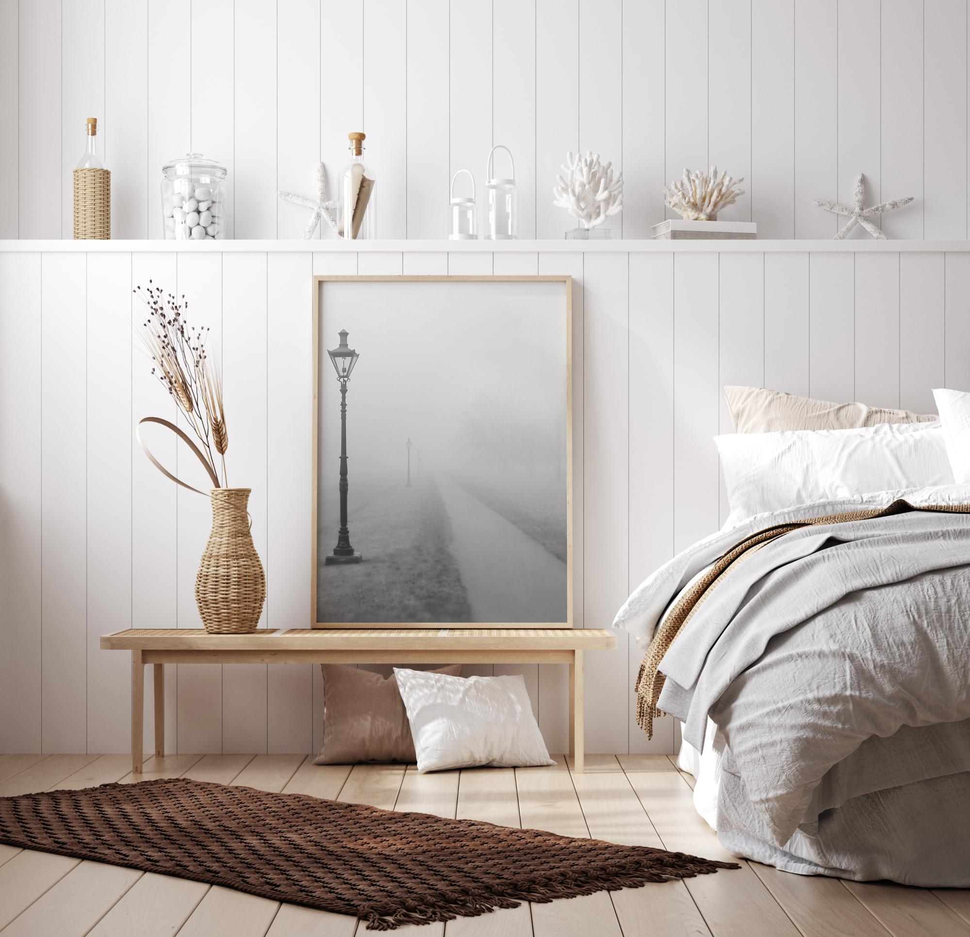 Μια αστική αφίσα με έναν ομιχλώδη δρόμο. Παλιές λάμπες δρόμου ακολουθούν έναν μοναχικό δρόμο που εξαφανίζεται μέσα στην ομίχλη στο βάθος. Μια ανατριχιαστική ηρεμία υπάρχει σε αυτήν την διακριτική φωτογραφία που επίσης φέρνει μαζί της μια αίσθηση χειμωνιάτικου κρύου. Διατηρήστε την αίσθηση αυτής της φωτογραφίας κρεμώντας την σε έναν λευκό τοίχο.