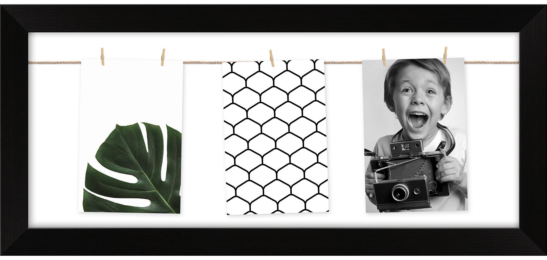 Η κορνίζα διαθέτει έναν ανοιχτό σχεδιασμό με δύο οριζόντια κορδόνια όπου μπορείτε εύκολα να στερεώσετε τις φωτογραφίες σας με τη βοήθεια των παρεχόμενων μίνι μανταλάκια. Συνολικά περιλαμβάνονται 5 μανταλάκια, που καθιστούν απλό να αλλάξετε και να διαφοροποιήσετε τις φωτογραφίες ή τις εικονογραφήσεις σας ανάλογα με τις ανάγκες.