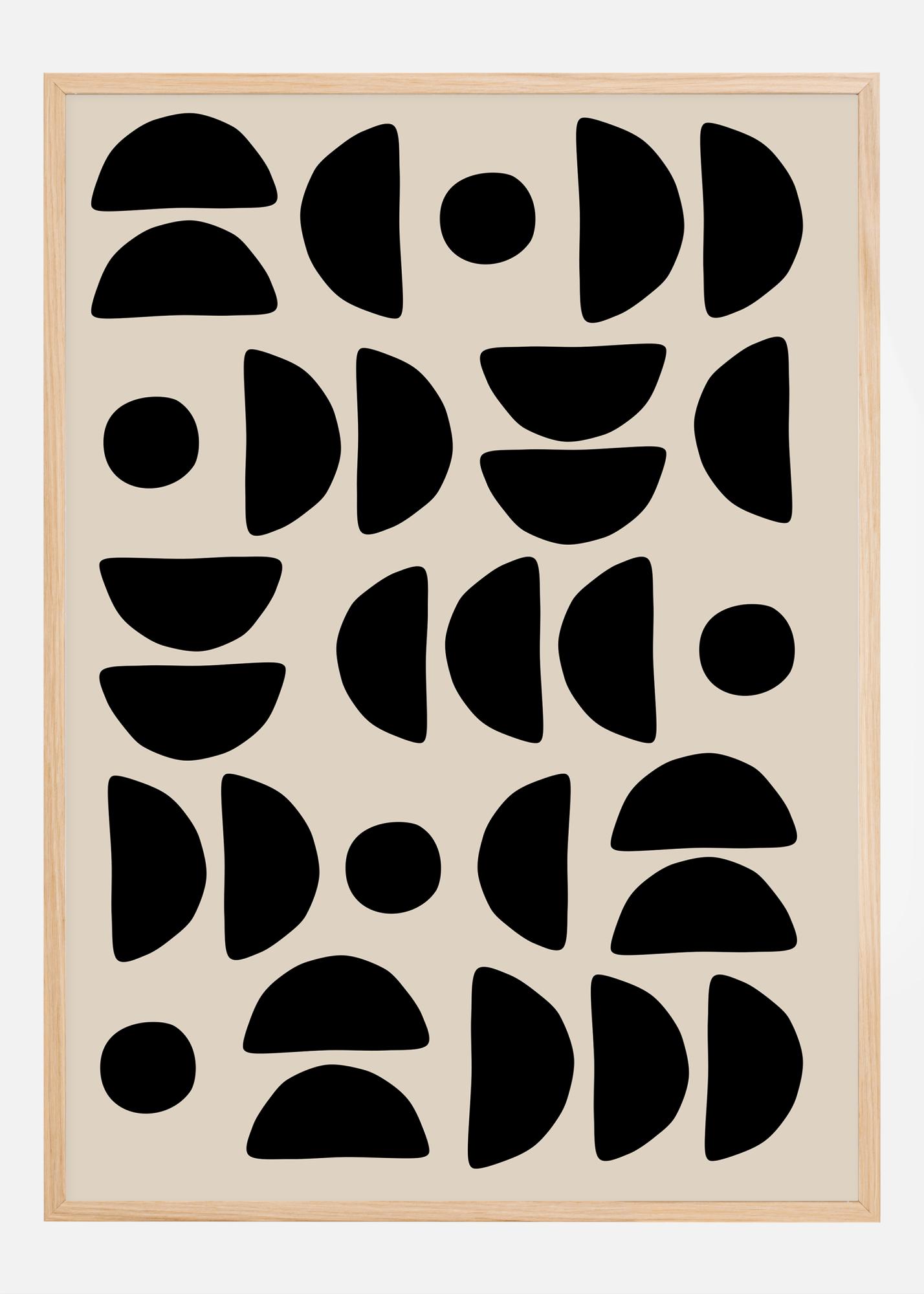 Αυτή η καλλιτεχνικά δημιουργημένη αφίσα ξεχωρίζει με το τολμηρό της μοτίβο γεωμετρικών σχημάτων σε μαύρο σε φόντο μπεζ. Ο αφηρημένος σχεδιασμός είναι παιχνιδιάρικος και ρυθμικός, δημιουργώντας μια οπτική ένταση που είναι ταυτόχρονα μοντέρνα και διαχρονική. Αυτό το έργο μπορεί να θεωρηθεί ως ένας φόρος τιμής τόσο στον οργανικό κόσμο όσο και στα κατασκευασμένα στοιχεία της γραφιστικής και είναι ιδανικό για όσους εκτιμούν την τέχνη με έντονες, καθαρές γραμμές και ισχυρές αντιθέσεις.