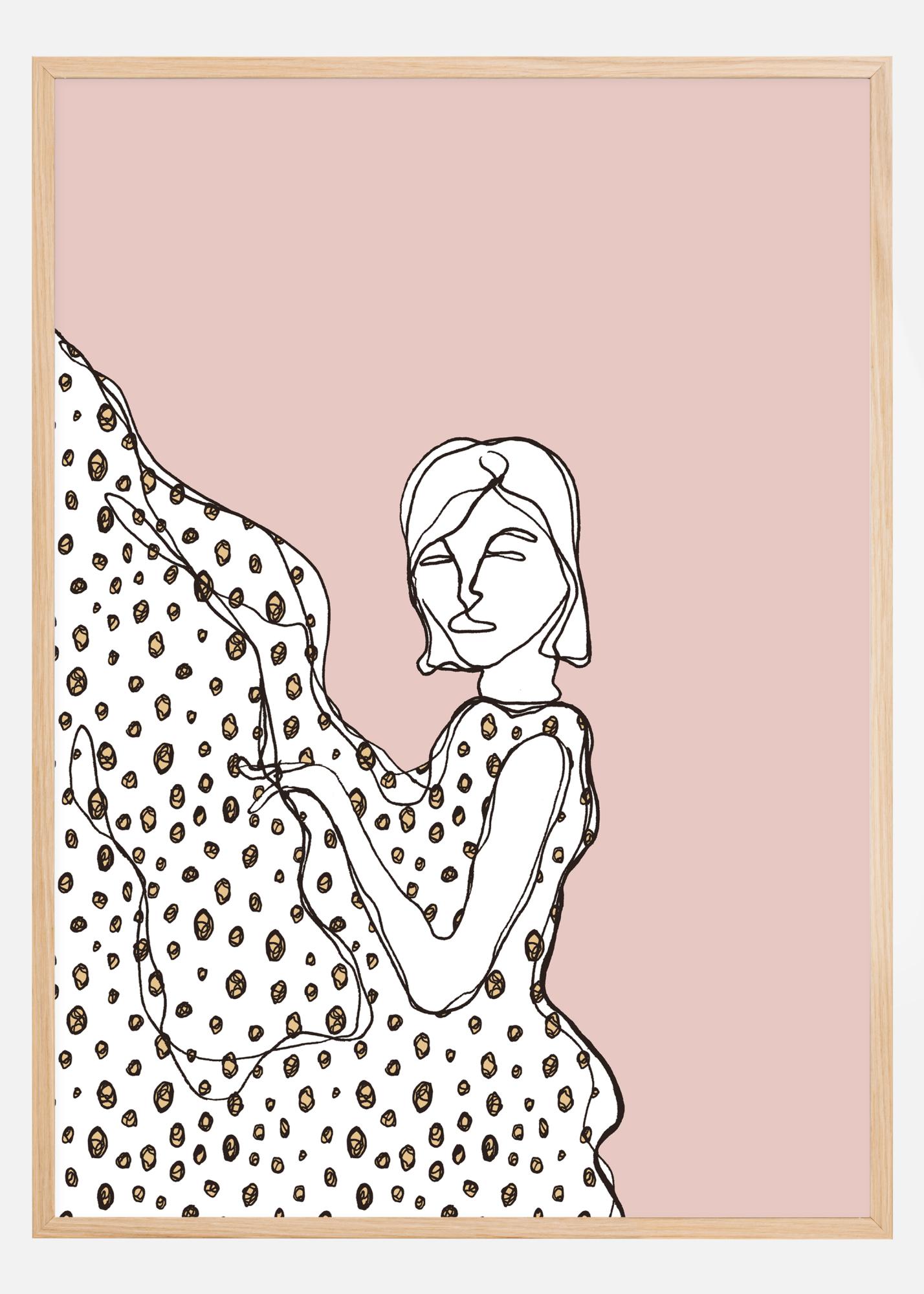 Μια απλή αφίσα με ένα σκίτσο ενός κοριτσιού με πουά φόρεμα. Το χοντροκομμένο σκίτσο του κοριτσιού δημιουργεί κίνηση καθώς στριφογυρίζει το φόρεμά της προς τα πάνω. Οι απλές πουά ξεχωρίζουν πάνω στο απαλό παστέλ ροζ φόντο που στέκεται μπροστά του. Αιχμαλωτίστε το βλέμμα της καθώς σε κοιτάζει.