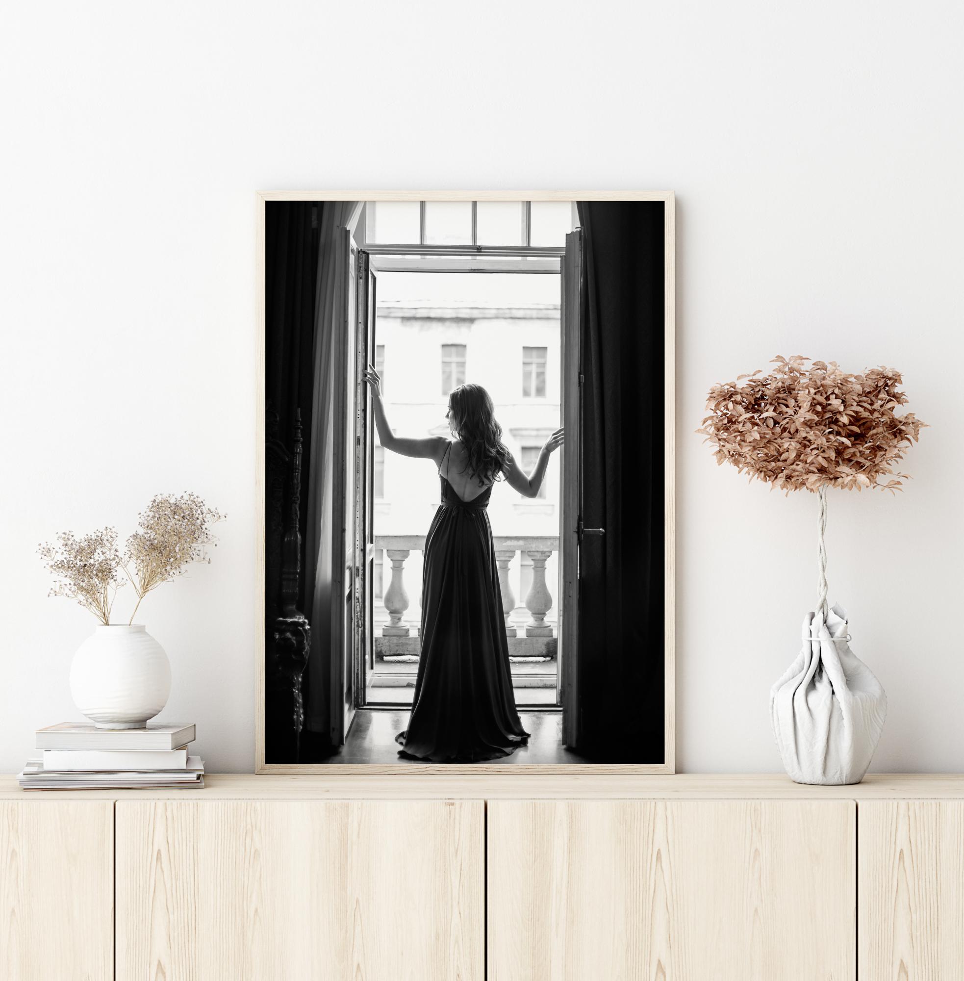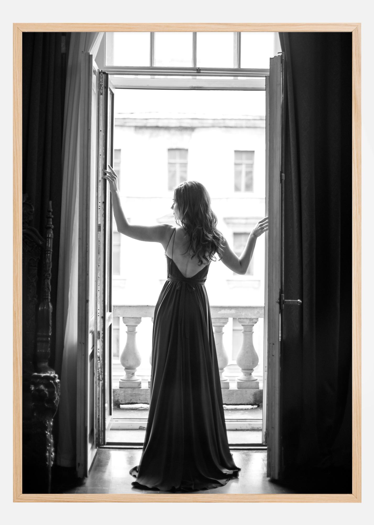 Μια ασπρόμαυρη φωτογραφία μιας γυναίκας με μακρύ φόρεμα που στέκεται μπροστά σε ορθάνοιχτες πόρτες μπαλκονιού, κοιτάζοντας την ημέρα. Μπροστά της διακρίνονται φθαρμένοι τσιμεντόλιθοι και μία φθαρμένη παλιά πρόσοψη. Μία αφίσα που εκπνέει έναν υπέροχο συνδυασμό του όμορφου και ζωντανού σε αντίθεση με το παλιό και πολυκαιρισμένο.