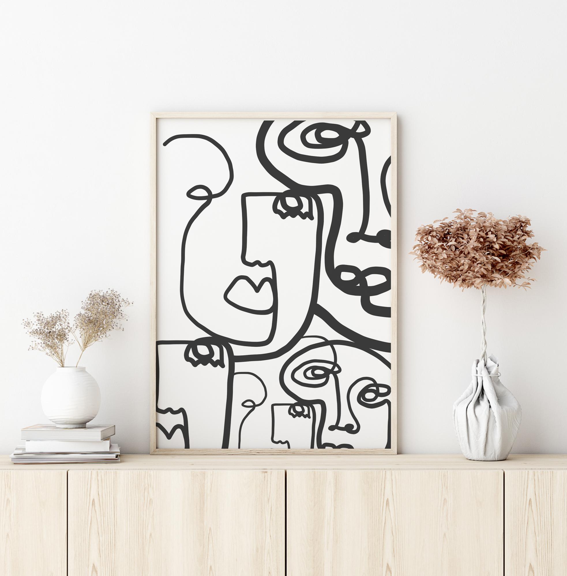Μια δραματική αφηρημένη αφίσα με πολλά σκίτσα προσώπων. Παχιές και λεπτές μαύρες γραμμές γεμίζουν αυτήν την εικόνα για να δημιουργήσουν πέντε ξεχωριστά πρόσωπα. Οι γραμμές στριφογυρίζουν στο λευκό φόντο, έτσι ώστε να πρέπει να συγκεντρωθείτε για να βρείτε όλα τα πρόσωπα που κρύβονται σε αυτήν τη ζωντανή εικόνα.