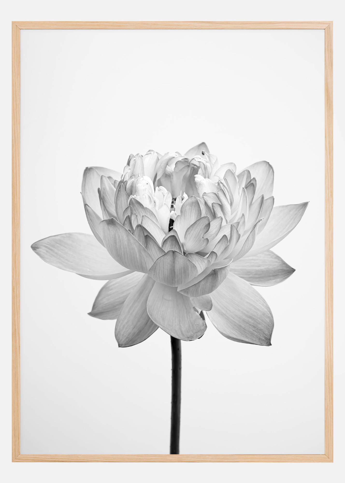Η αφίσα αυτή απεικονίζει μια διαχρονική και κομψή ασπρόμαυρη εικόνα ενός λουλουδιού σε πλήρη άνθιση. Η λεπτομερής απεικόνιση κάθε φύλλου αναδεικνύει το έργο τέχνης της φύσης και προσφέρει μια σχεδόν διαλογιστική παρατήρηση. Αυτή η απλή αλλά ισχυρή εικόνα είναι μια μελέτη στη μορφή, στο φως και στη σκιά, και πώς αυτά τα στοιχεία συνεργάζονται για να αναδείξουν την ομορφιά του φυσικού κόσμου.