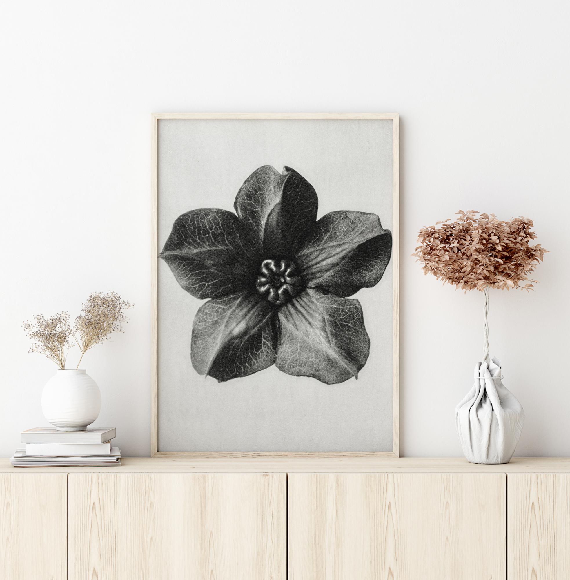 Ένα όμορφο βοτανικό τύπωμα με ένα μοναχικό φυτό σε πλήρη άνθηση. Ένα απλό αλλά όμορφο τύπωμα ζωγραφισμένο σε ασπρόμαυρο και απεικονίζει ένα λουλούδι με πέντε πέταλα. Διακοσμήστε τον τοίχο σας με μια βοτανική αφίσα για να δημιουργήσετε μια φυσική αίσθηση στο σπίτι σας.