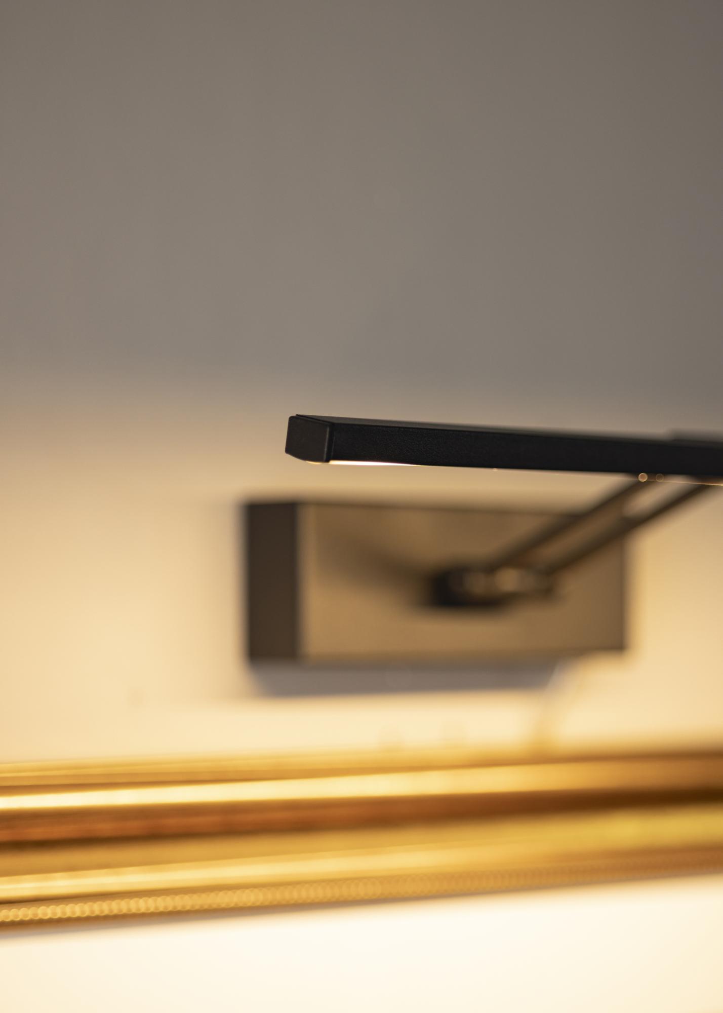 Φωτισμός πίνακα σε σύγχρονο Σουηδικό σχεδιασμό που ταιριάζει σε πίνακες με πλάτος 60-100 cm. Το φωτιστικό έχει ύψος 5 cm και μήκος 37 cm με απόσταση από τον τοίχο 20 cm. Με το ισχυρό LED φωτισμό των 720 lumens προσφέρει ευχάριστο φωτισμό ακόμα και σε μεγαλύτερους πίνακες.