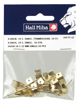 Ξεκινήστε τον επιλογέα κορνίζας »Ορείχαλκος X-γάντζος για τοποθέτηση σε ξύλινο ή γυψοσανίδα. Αντέχει φορτίο έως 5 κιλά.
