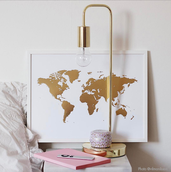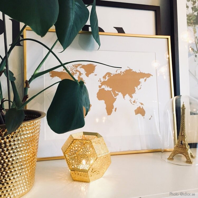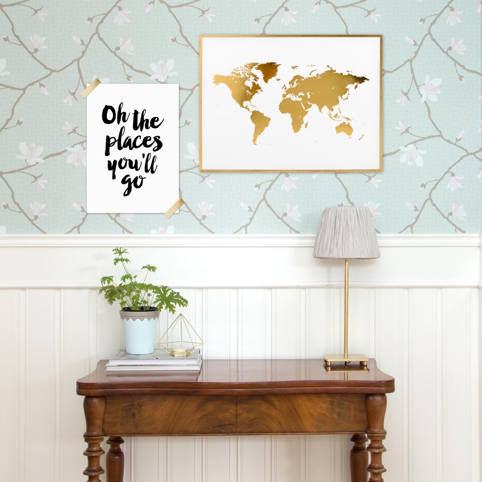 Χάρτης του κόσμου σε χρυσό - Προστατευμένος με λεπτή μεμβράνη Αφίσα (30x40 cm)