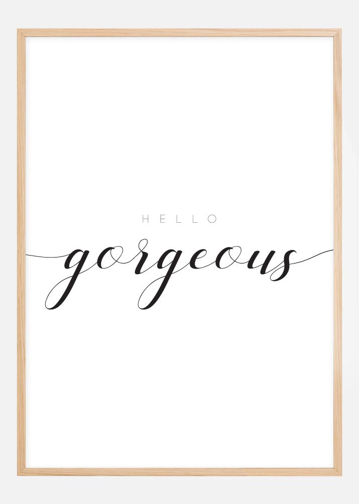 Μια απλή αλλά εντυπωσιακή εκτύπωση με δύο απλές λέξεις. Με απλά μαύρα γράμματα στο κέντρο της λευκής εκτύπωσης, και οι δύο λέξεις έχουν διαφορετικές γραμματοσειρές. Το "Hello" είναι γραμμένο με μικρά απαλά κεφαλαία, ενώ το "Gorgeous" είναι γραμμένο σε τολμηρό αλλά κομψό στυλ. Η τέλεια αφίσα για να κρεμάσετε σε ένα μοντέρνο σαλόνι.