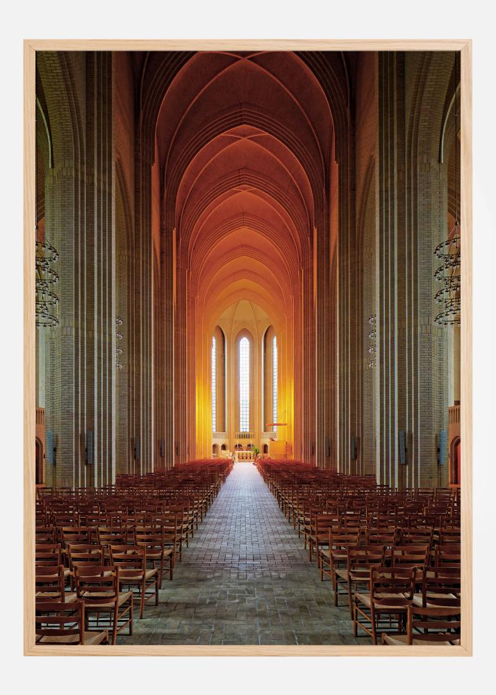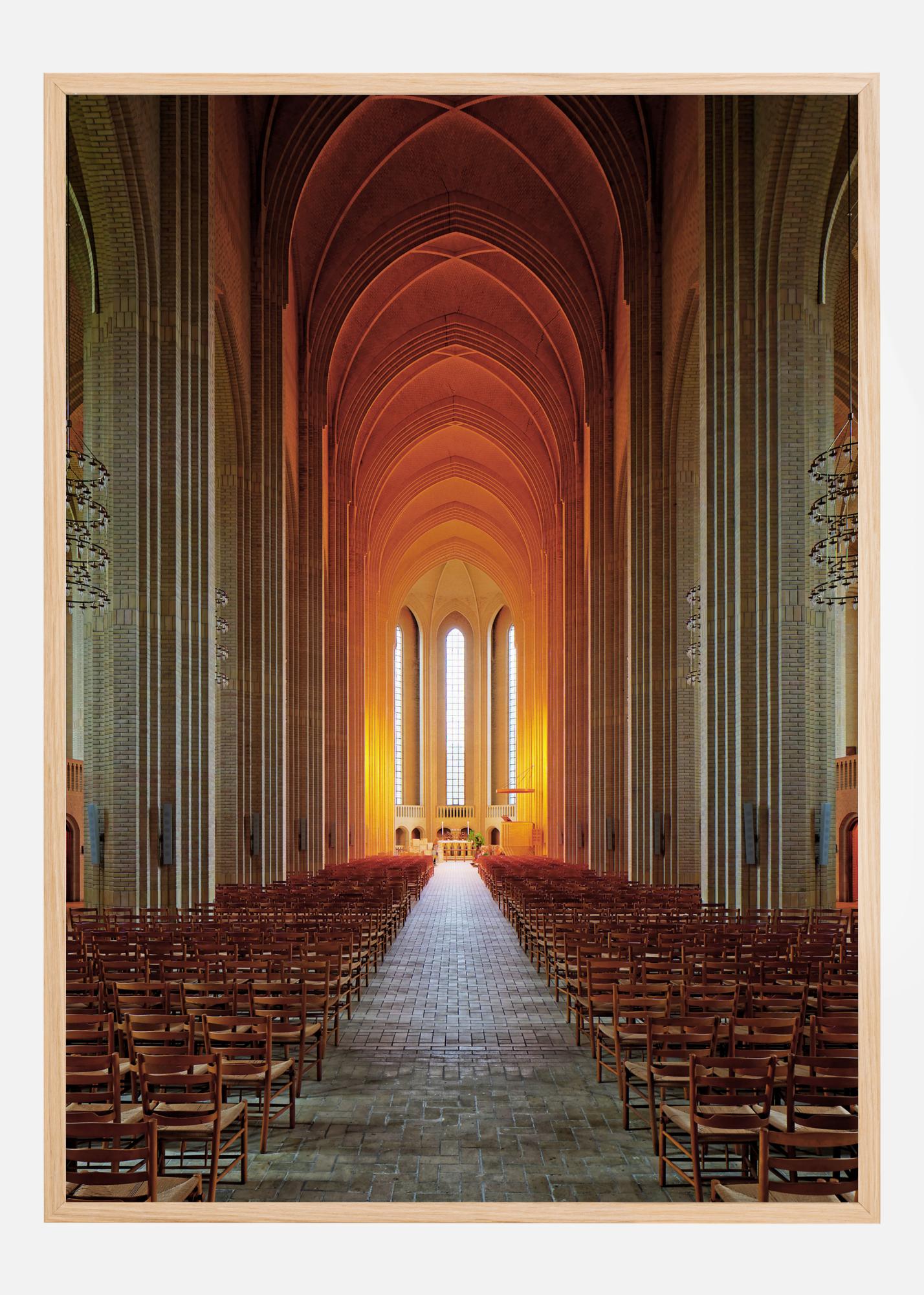 Μια εκπληκτική αρχιτεκτονική αφίσα μέσα σε μια εκκλησία. Η μακριά εκκλησιαστική διάδρομος οδηγεί στο ιερό και η ψηλή οροφή καθώς και οι πέτρινες κολόνες δίνουν μια πολύ ειρηνική αίσθηση. Πορτοκαλί φως αντανακλάται μέσα από τα παράθυρα, δημιουργώντας μια αίσθηση ζεστασιάς και αρμονίας. Βιώστε την ηρεμία σε αυτή την εικόνα.