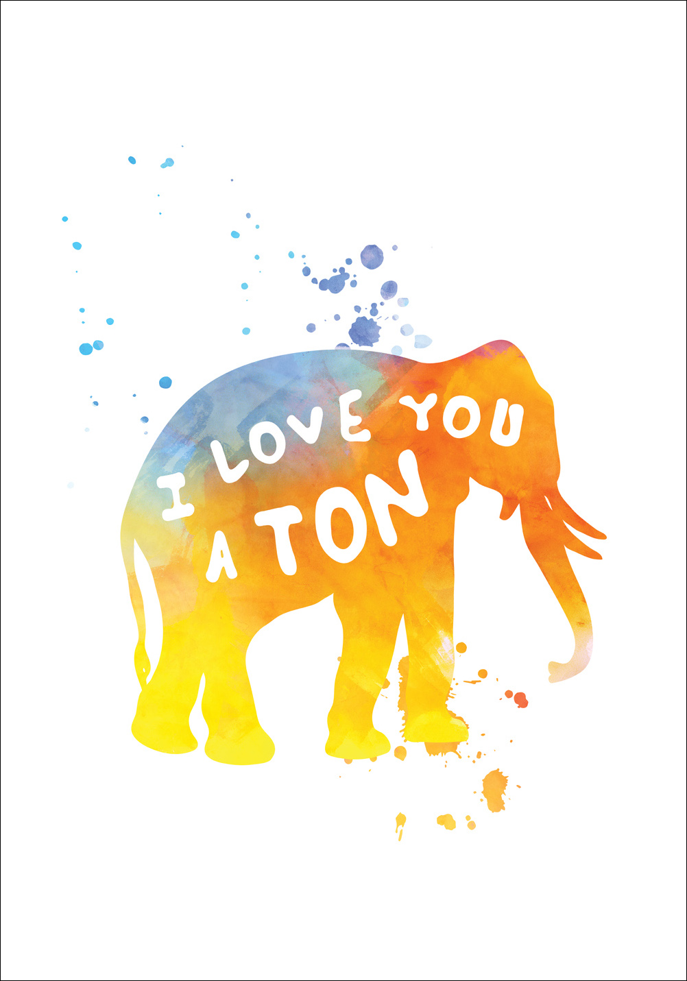 Στοργική και διασκεδαστική αφίσα που ταιριάζει να την προσφέρετε σε εκείνους που αγαπούν τους ελέφαντες και θέλουν μια πινελιά χρώματος στον τοίχο. Ο ελέφαντας φαίνεται να έχει εκτυπωθεί με μια πληθώρα χρωμάτων πάνω σε λευκό χαρτί, με το κείμενο σε λευκή γραμματοσειρά με αίσθηση χειρόγραφου. Η αφίσα είναι όμορφη να πλαισιωθεί με μια κομψή μονόχρωμη κορνίζα που αναδεικνύει τις αποχρώσεις του θέματος και που ταιριάζει καλά με την υπόλοιπη διακόσμηση του δωματίου όπου θα κρεμαστεί η εικόνα.
