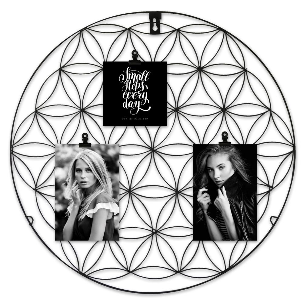 Αυτό είναι ένα εντυπωσιακό στρογγυλό πλαίσιο από μαύρο μέταλλο. Το κολάζ πλαίσιο έχει διάμετρο 50 εκ. Ø και οι φωτογραφίες στερεώνονται με κλιπ σε ένα φόντο με διακοσμητικό μοτίβο. Επειδή στερεώνετε τις φωτογραφίες με κλιπ, μπορείτε να επιλέξετε να τοποθετήσετε φωτογραφίες σε διαφορετικά μεγέθη για να δημιουργήσετε μια κομψή και λίγο δυναμική αίσθηση. Αυτό το στρογγυλό κολάζ πλαίσιο από μέταλλο μπορείτε να το τοποθετήσετε όμορφα στο σπίτι για μια όμορφη εστίαση ή να το χαρίσετε ως ένα ωραίο δώρο σε κάποιον!