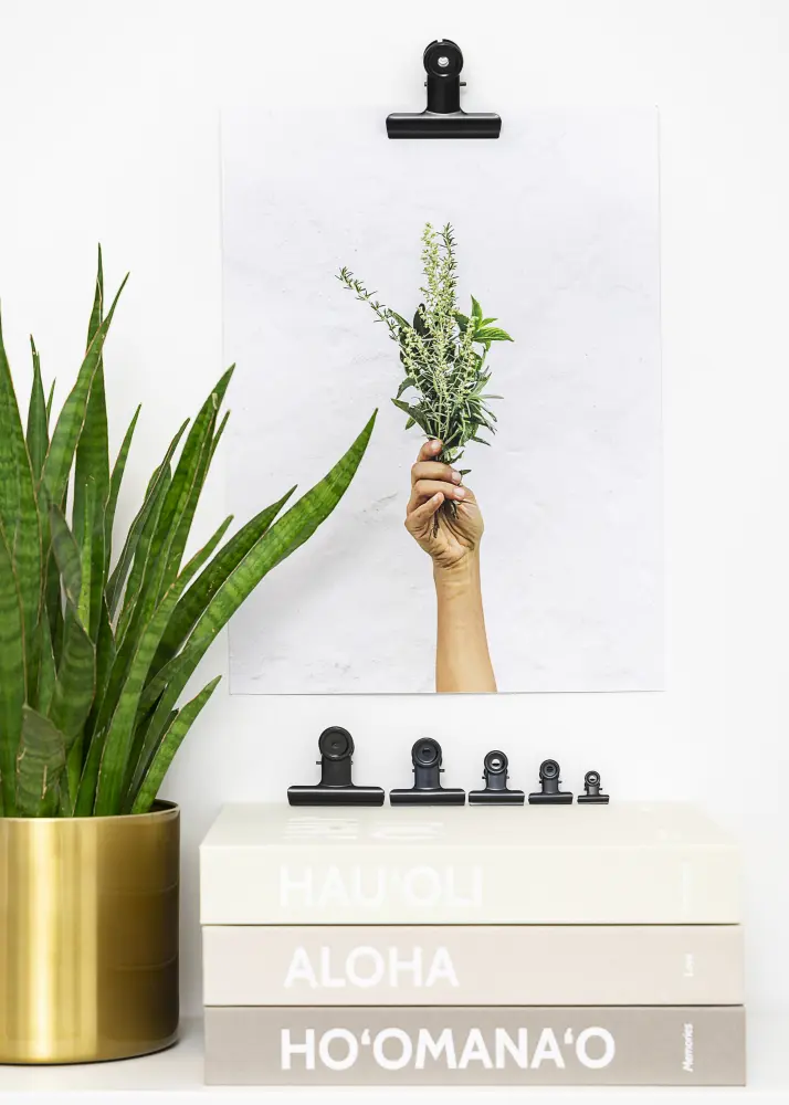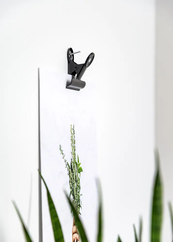 Αυτός ο μαύρος μεταλλικός σφιγκτήρας έχει ένα κομψό ματ φινίρισμα και προσφέρει στους αφίσες και στα έντυπά σας μια κομψή και μοντέρνα ανάρτηση. Το άνοιγμα του σφιγκτήρα έχει μια ισχυρή λαβή που σας επιτρέπει να στερεώσετε ακόμη και το πιο λεπτό χαρτί, ενώ μπορείτε να τον χρησιμοποιήσετε και για υλικό με μεγαλύτερο πάχος. Αν έχετε μια μεγάλη αφίσα που θέλετε να κρεμάσετε, μπορείτε να επιλέξετε να χρησιμοποιήσετε δύο σφιγκτήρες αφίσας. Ο σχεδιασμός του μεταλλικού σφιγκτήρα είναι κομψός, και οι τρύπες στην στρογγυλή κορυφή του σφιγκτήρα διευκολύνουν και καθιστούν εύκολη την ανάρτηση στον τοίχο με ένα μικρό καρφί ή βίδα.