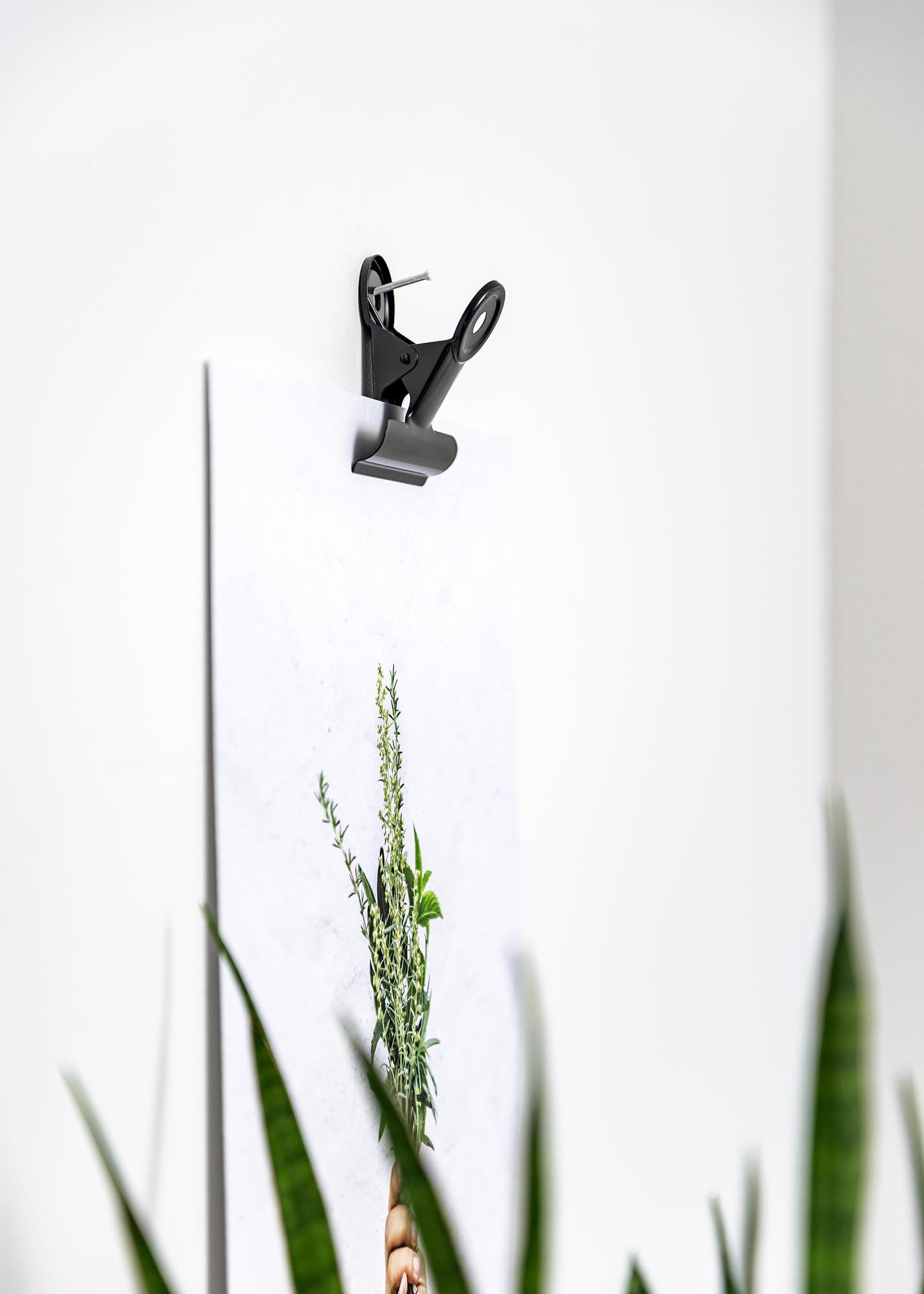 Αυτό το μαύρο μεταλλικό κλιπ έχει ένα κομψό ματ φινίρισμα και δίνει στις αφίσες και τα εκτυπώματά σας μια σικ και μοντέρνα ανάρτηση. Το άνοιγμα του κλιπ έχει ισχυρό κράτημα, το οποίο σας επιτρέπει να στερεώσετε ακόμα και το πιο λεπτό χαρτί, ενώ είναι επίσης κατάλληλο για μοτίβα με λίγο μεγαλύτερο πάχος. Αν έχετε μια μεγάλη αφίσα που θέλετε να κρεμάσετε, μπορείτε να επιλέξετε να χρησιμοποιήσετε δύο μεταλλικούς σφιγκτήρες αφίσας. Ο σχεδιασμός του μεταλλικού κλιπ είναι κομψός και οι τρύπες στην στρογγυλή κορυφή του κλιπ κάνουν εύκολη και άνετη την ανάρτηση στον τοίχο με ένα μικρό καρφί ή βίδα.