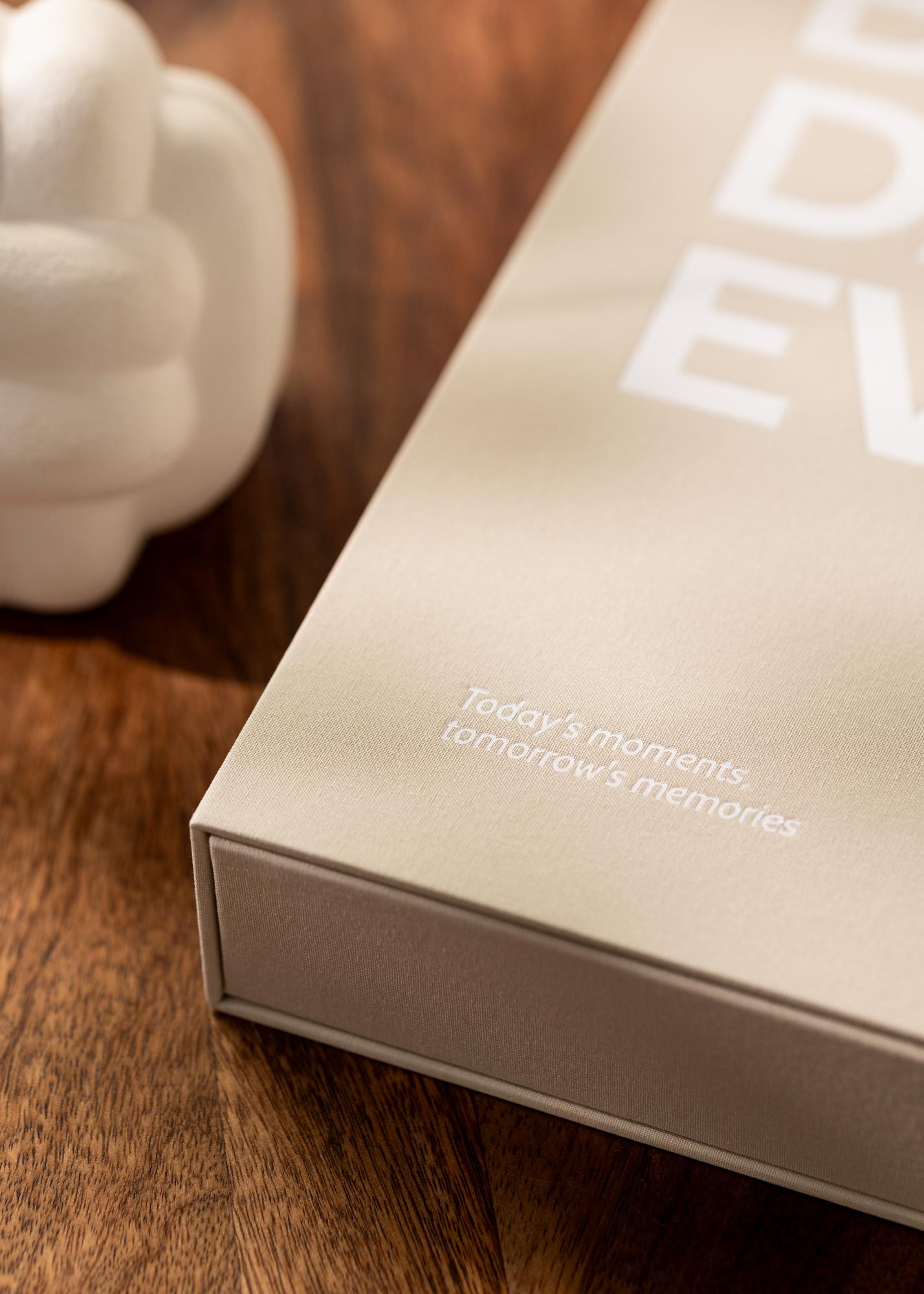 Ανακαλύψτε το KAILA BEST DAY EVER Creme - ένα κομψό και στιλάτο άλμπουμ φωτογραφιών που έχει σχεδιαστεί για να αποτελεί ένα όμορφο κομμάτι εσωτερικής διακόσμησης στο τραπεζάκι του σαλονιού σας. Με τα μπεζ εξώφυλλα και τις μαύρες σελίδες του, αυτό το άλμπουμ γίνεται ένα εντυπωσιακό Coffee Table Book που μπορείτε να επιδείξετε περήφανα στο σπίτι σας.