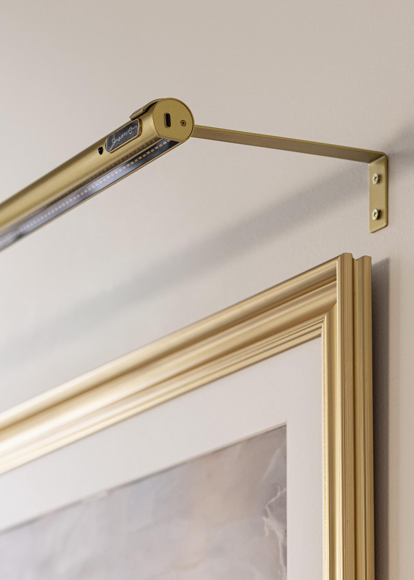 Αναδείξτε τα έργα τέχνης σας με το KAILA Brilliance – έναν κομψό και λειτουργικό φωτισμό πίνακα με μπαταρίες που προσφέρει τέλειο φωτισμό επί του πίνακα χωρίς καλώδια! Χάρη στον ασύρματο σχεδιασμό του, μπορεί να τοποθετηθεί εύκολα οπουδήποτε χωρίς να χρειάζεται να λάβετε υπόψη τις πρίζες. Με το κομψό χρυσό φινίρισμα και το ρυθμιζόμενο βραχίονα του, απλώνει απαλό και ομοιόμορφο φως στον πίνακά σας, τονίζοντας λεπτομέρειες και χρώματα με όμορφο τρόπο. Η απλή τοποθέτηση και η εύκολη χρήση καθιστούν αυτόν τον φωτισμό πίνακα μια εξαιρετική επιλογή για το σπίτι και την γκαλερί.