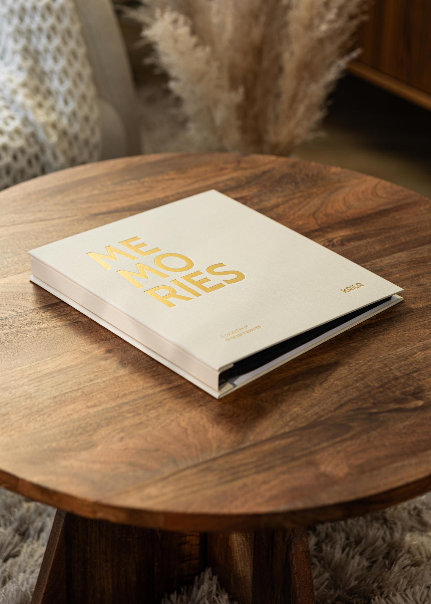 Αυτό είναι ένα κομψό άλμπουμ φωτογραφιών με διαχρονικό σχεδιασμό και πρακτικές θήκες για φωτογραφίες – ιδανικό για εσάς που θέλετε να διατηρήσετε τις καλύτερες φωτογραφικές αναμνήσεις σας με όμορφο και απλό τρόπο. Το άλμπουμ είναι ντυμένο με μπεζ ύφασμα και στο μπροστινό μέρος διακοσμείται με το κείμενο ”MEMORIES” σε χρυσοτυπία. Για επιπλέον αίσθηση, το άλμπουμ έχει και τον υπότιτλο ”A collection of timeless treasures” γραμμένο σε μια γωνία. Τα υφασμάτινα εξώφυλλα, μαζί με τη χρυσαφένια γραφή, κάνουν το άλμπουμ φωτογραφιών μια πολυτελή διακοσμητική λεπτομέρεια που θα θέλετε να έχετε εκτεθειμένο.