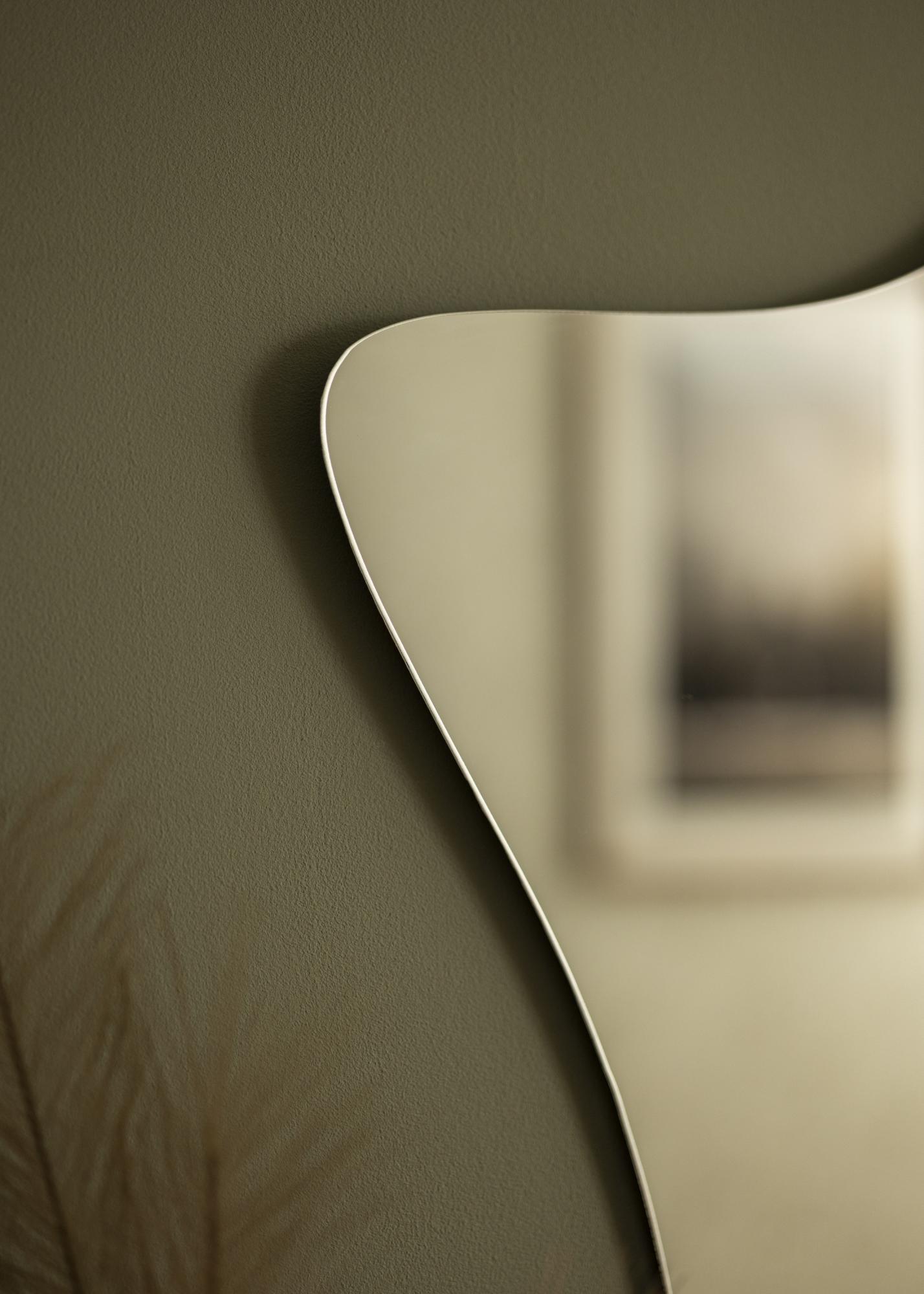Μοντέρνος μινιμαλισμός και μια μορφή εμπνευσμένη από τη φύση – αυτός ο καθρέφτης τοίχου σας προσφέρει το καλύτερο και από τους δύο κόσμους! Η μοναδική μορφή του θυμίζει ανθισμένες ανεμώνες, ενώ ο σχεδιασμός χωρίς πλαίσιο και το 4 mm λεπτό γυαλί καθρέφτη δίνουν στον καθρέφτη μια κομψή και μοντέρνα εμφάνιση.