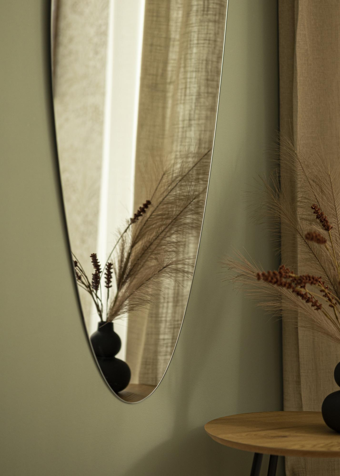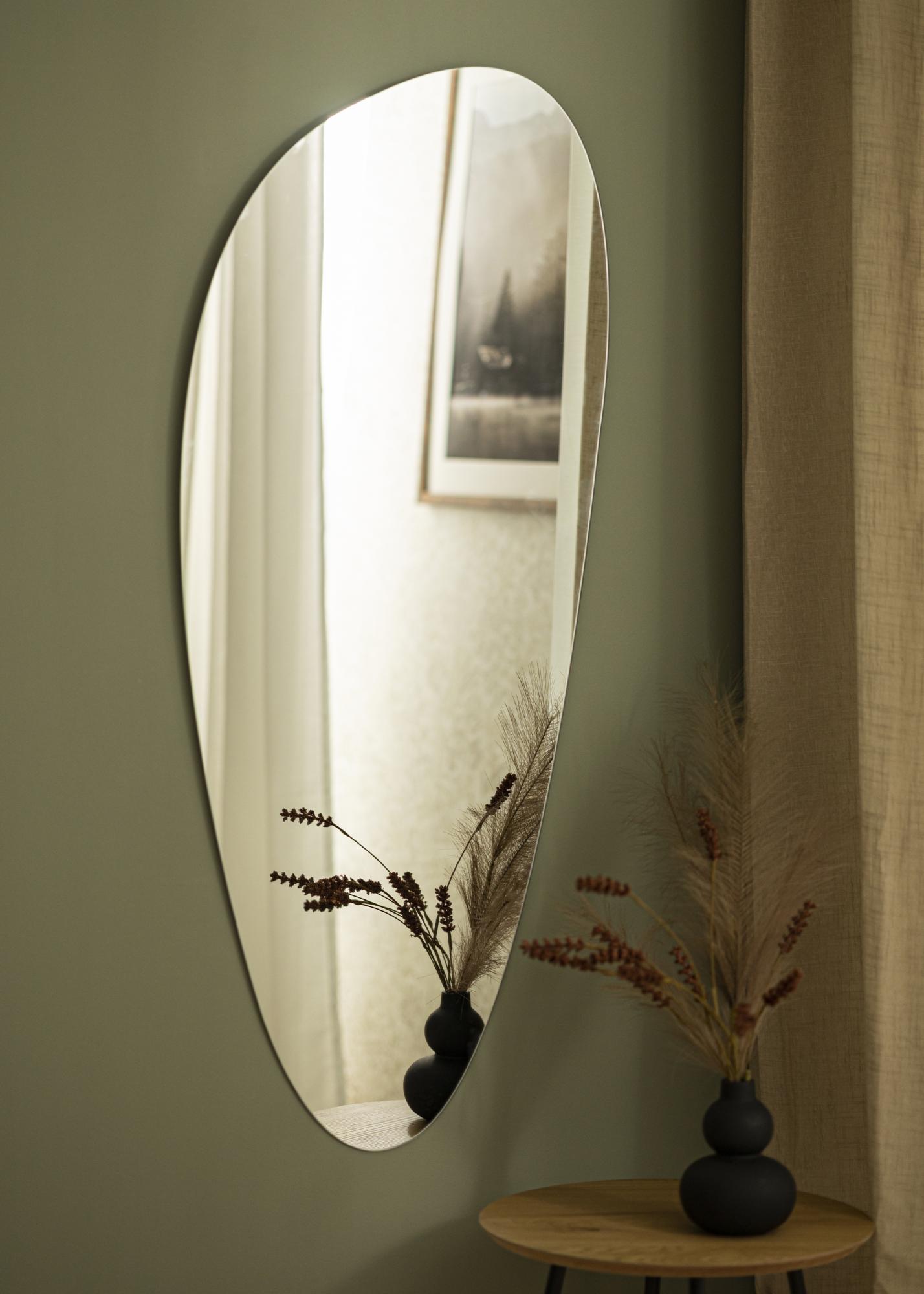 Αυτός ο καθρέφτης τοίχου είναι μινιμαλιστικός στην καλύτερη εκδοχή του – με σχεδιασμό χωρίς πλαίσιο και ασύμμετρο, επίμηκες σχήμα. Η λεπτότητα του γυαλιού του καθρέφτη, μόλις 4 χιλιοστά, ενισχύει περαιτέρω το κομψό μινιμαλιστικό αίσθημα.