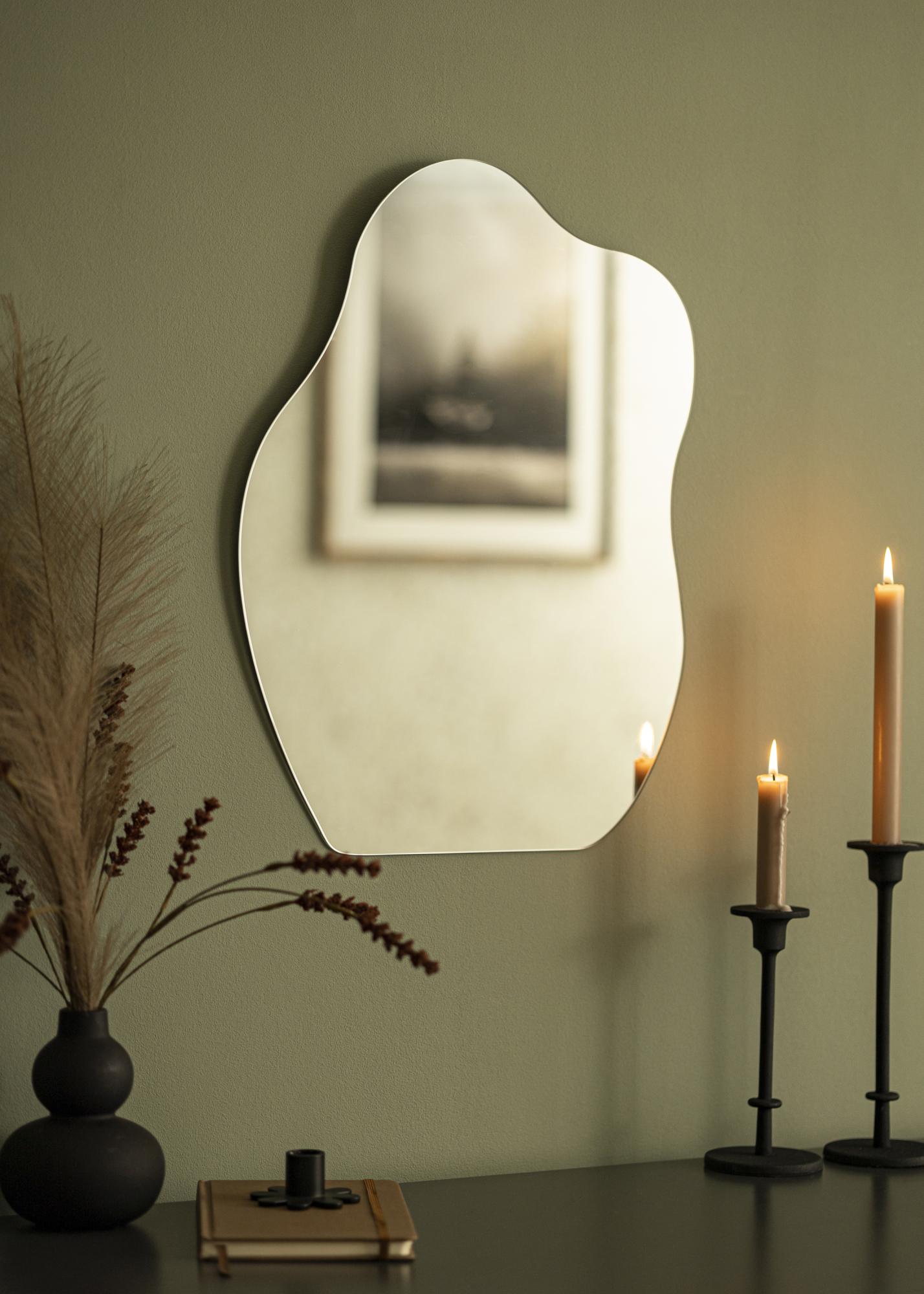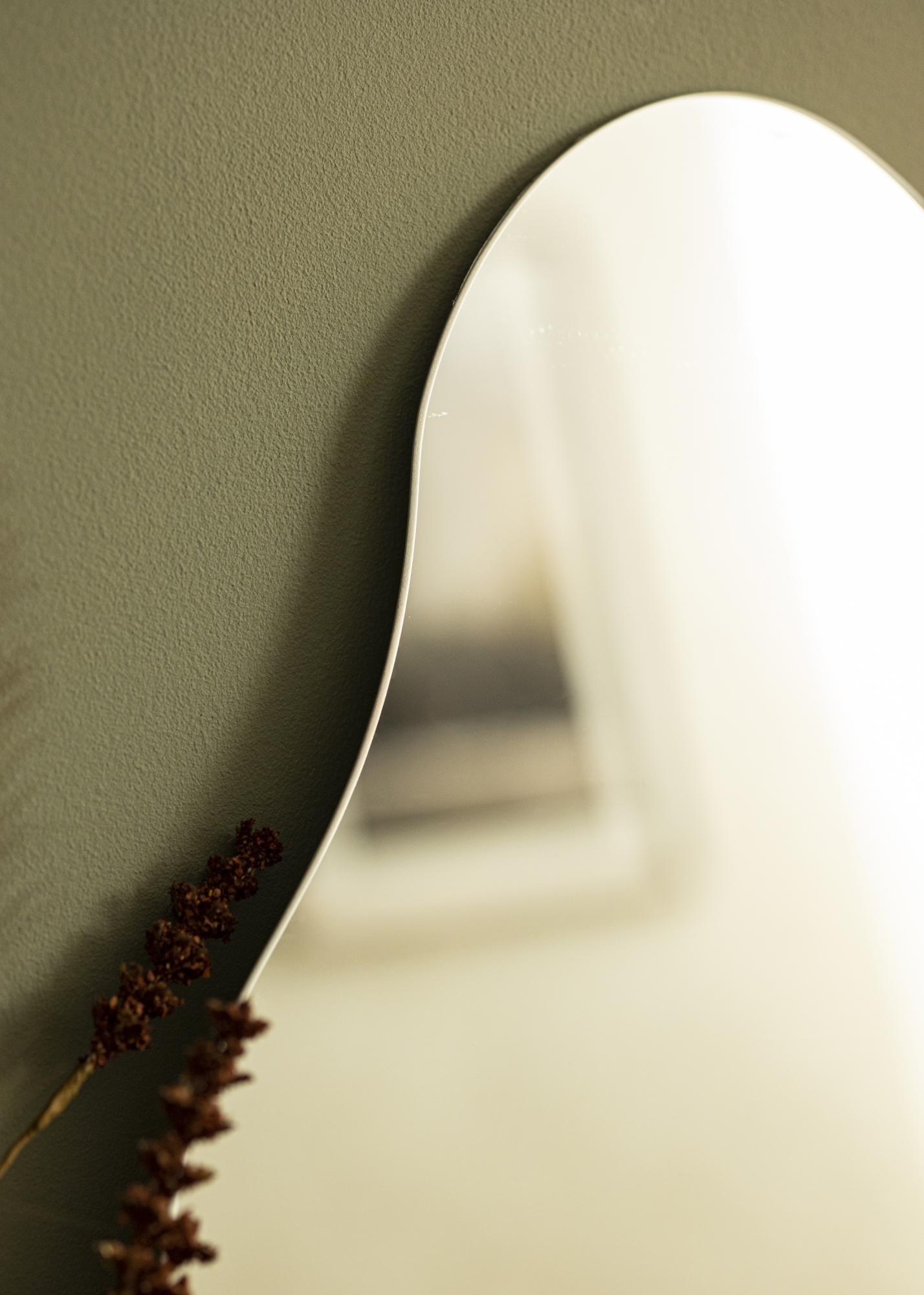 Αυτός ο καθρέφτης τοίχου προσφέρει κομψότητα και παιχνιδιάρικο χαρακτήρα, με κυματιστό σχήμα που δίνει στον καθρέφτη την μοναδική του εμφάνιση. Η κατώτατη άκρη είναι ίσια, πράγμα που καθιστά τον καθρέφτη κατάλληλο να τοποθετηθεί όρθιος πάνω σε έπιπλο, κλίνωντας προς τον τοίχο. Φυσικά, μπορείτε επίσης να τοποθετήσετε τον καθρέφτη στον τοίχο!