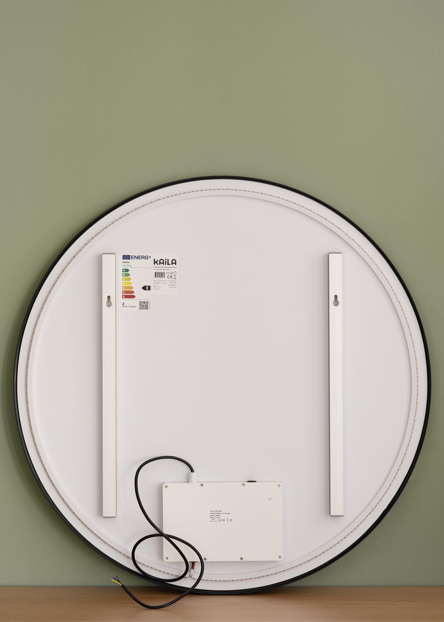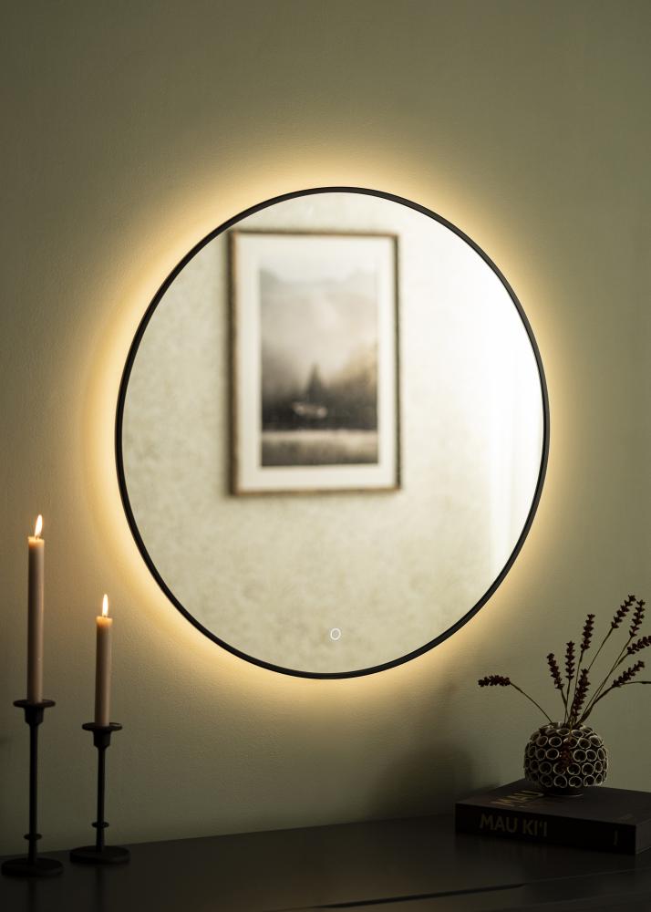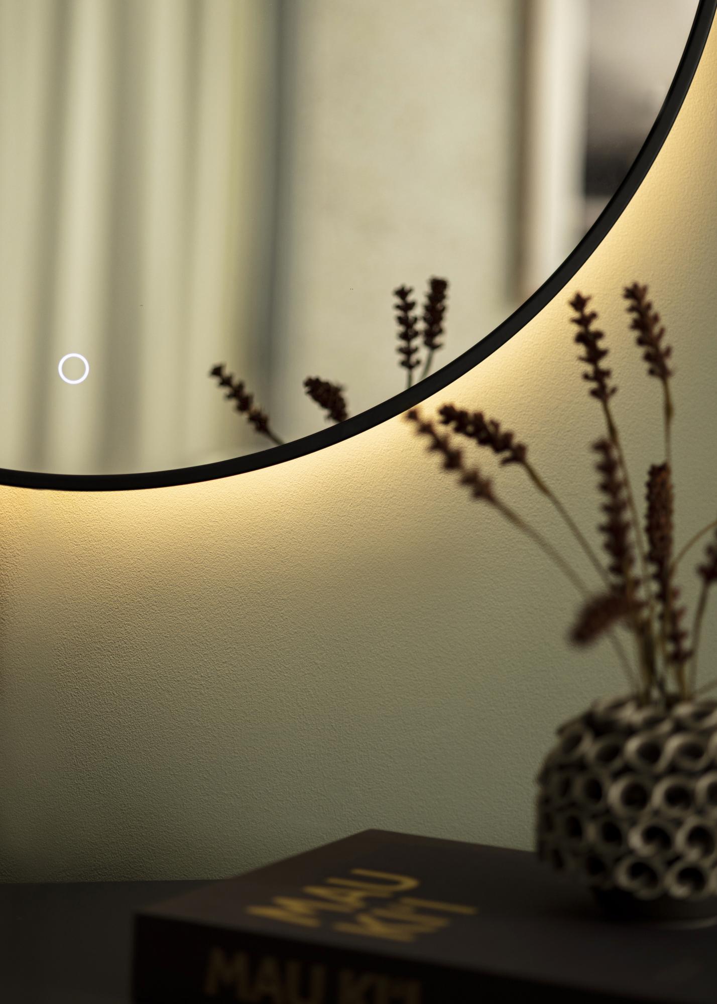 Αυτός είναι ένας κομψός καθρέφτης με φωτισμό LED, που είναι εξίσου όμορφος στο χολ όσο και στο μπάνιο. Ο καθρέφτης έχει κλασική στρογγυλή μορφή και μεταλλικό πλαίσιο σε σοφιστικέ μαύρο χρώμα. Ο ενσωματωμένος φωτισμός LED του καθρέφτη σε 3000K μπορεί να ρυθμιστεί από 10% έως 100% της φωτεινότητας. Αυτό σας επιτρέπει να ρυθμίσετε εύκολα τον φωτισμό στην φωτεινότητα που προτιμάτε και να την αλλάξετε αν αλλάξουν οι ανάγκες σας. Για να μειώσετε την φωτεινότητα, κρατήστε το κουμπί αφής στο κάτω μέρος της επιφάνειας του καθρέφτη για μερικά δευτερόλεπτα. Ο φωτισμός LED είναι τοποθετημένος στο πίσω μέρος του καθρέφτη προσφέροντας στο φως μια πιο απαλή έκφραση.