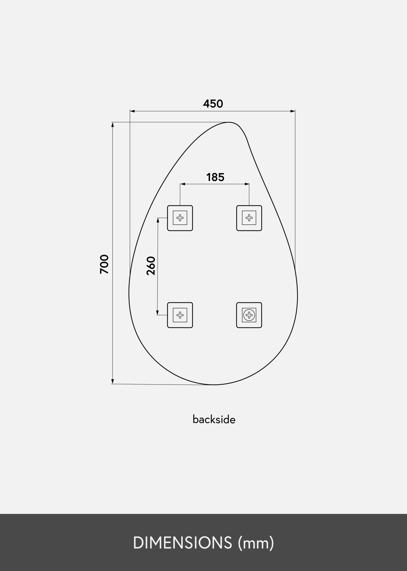 Ένας καθρέφτης σχήματος σταγόνας όπως αυτός μπορεί να τοποθετηθεί στον τοίχο σε οποιοδήποτε δωμάτιο όπου θέλετε να προσθέσετε κομψότητα και πρακτική λειτουργία, καθώς και να δημιουργήσετε μια φιλόξενη και ευχάριστη ατμόσφαιρα. Ο καθρέφτης διατίθεται σε διάφορα μεγέθη, αυτή η παραλλαγή έχει μέγεθος 45x70 cm.