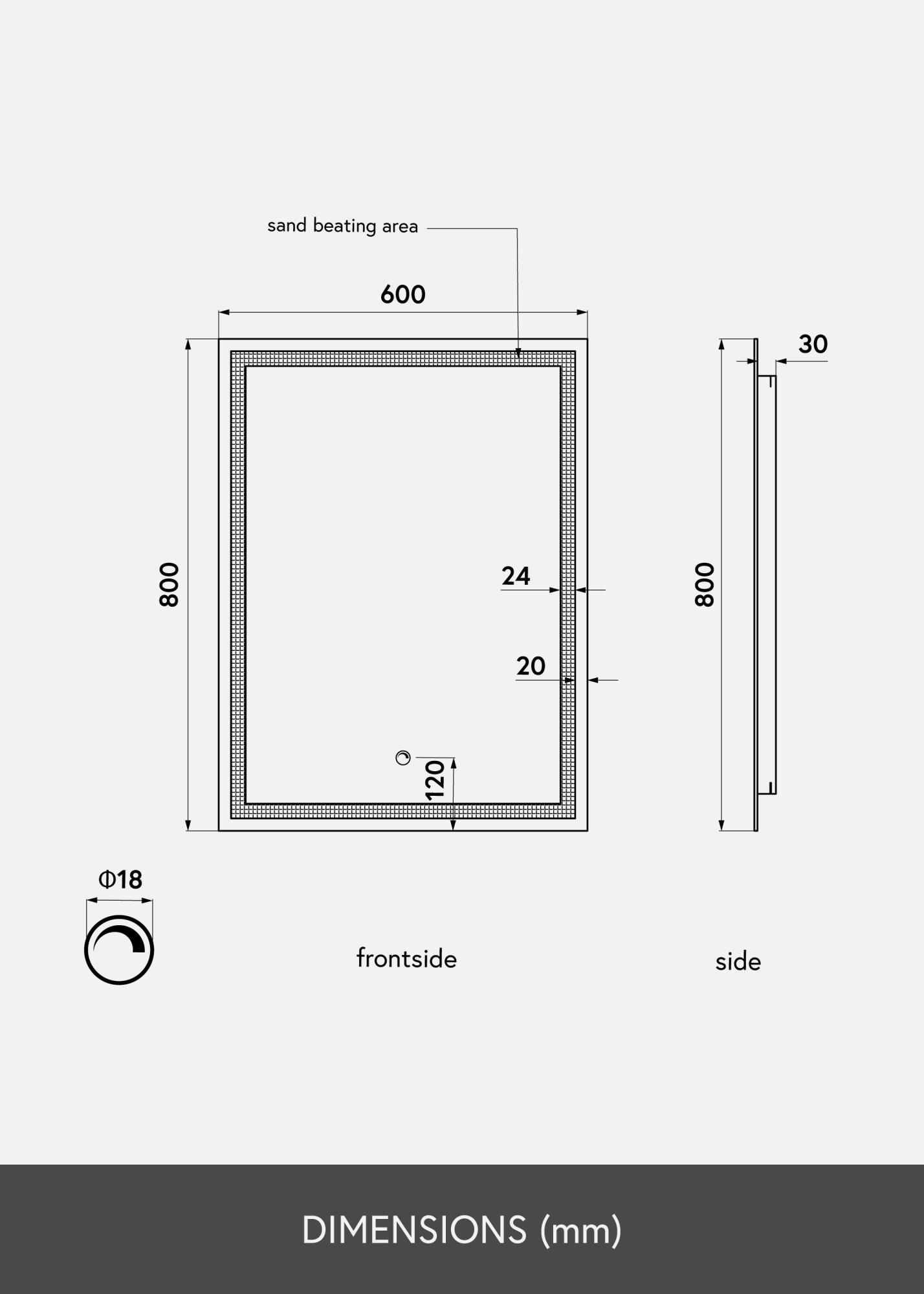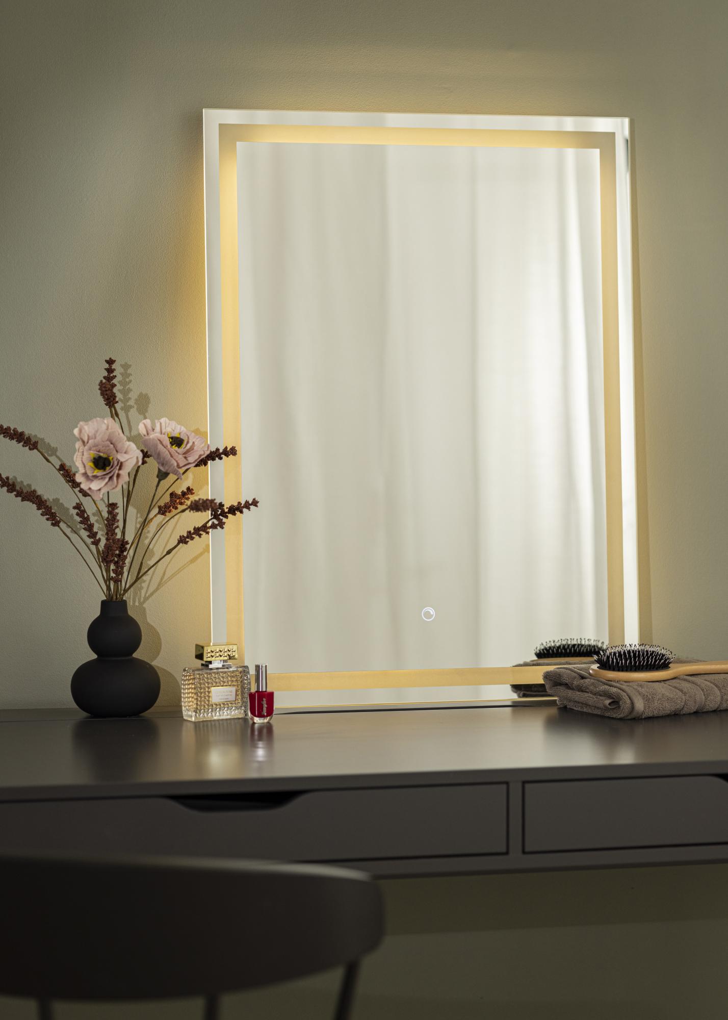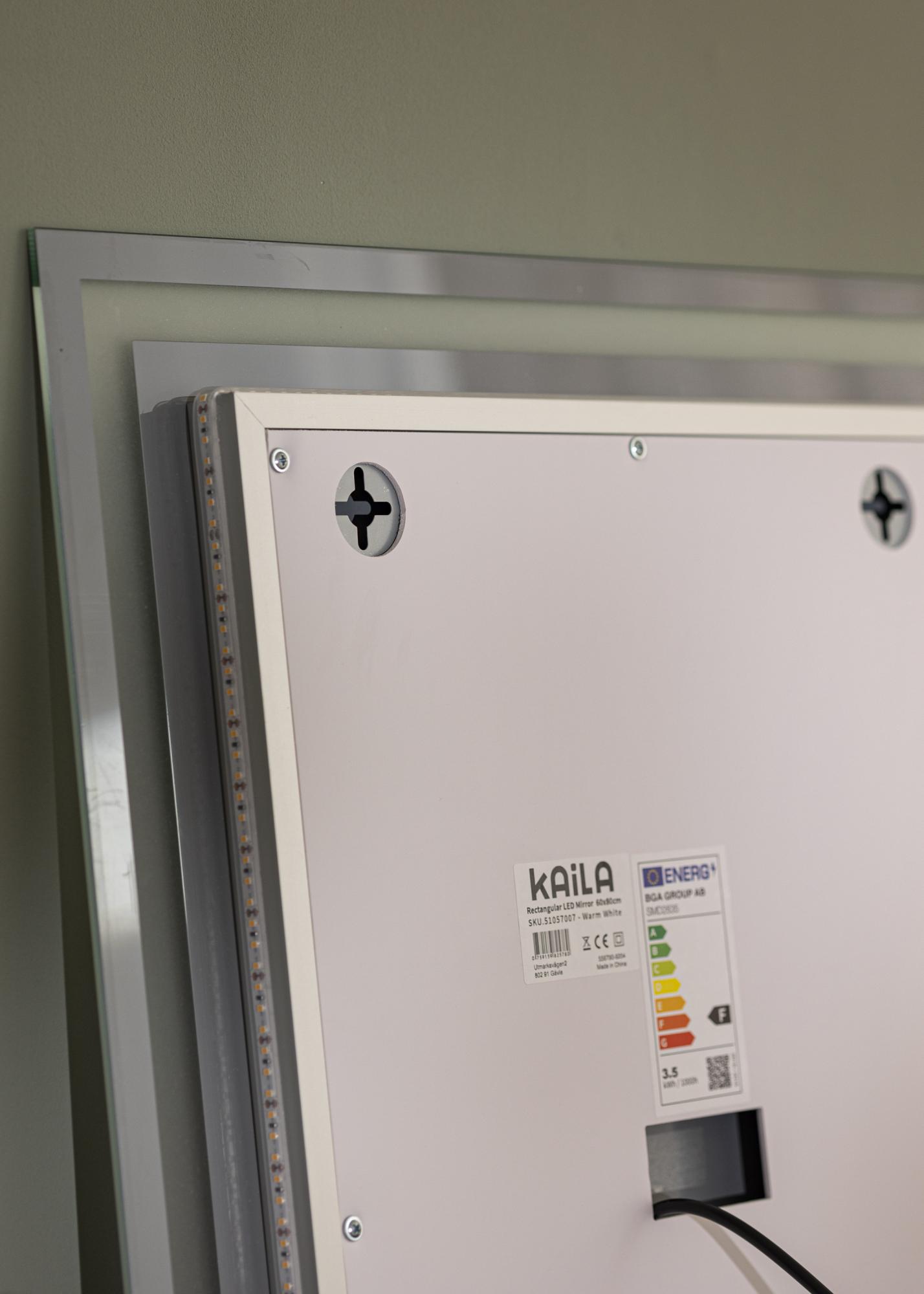 Αν επιθυμείτε έναν σύγχρονο και μινιμαλιστικό καθρέφτη με φωτισμό, αυτός είναι ο καθρέφτης για εσάς. Είναι εξοπλισμένος με ενεργειακά αποδοτικά LED φώτα που παρέχουν ομοιόμορφο φωτισμό, το οποίο είναι ιδανικό όταν θέλετε να εφαρμόσετε μακιγιάζ ή απλά να δείτε τον εαυτό σας κατά τη διάρκεια της ημέρας. Ο φωτισμός είναι τοποθετημένος στην πίσω πλευρά του καθρέφτη, αλλά λάμπει μέσα από αυτόν σαν κομψό πλαίσιο στην μπροστινή πλευρά του καθρέφτη. Για να ρυθμίσετε τη φωτεινότητα, κρατήστε πατημένο το κουμπί αφής στο κάτω άκρο του καθρέφτη για λίγα δευτερόλεπτα.