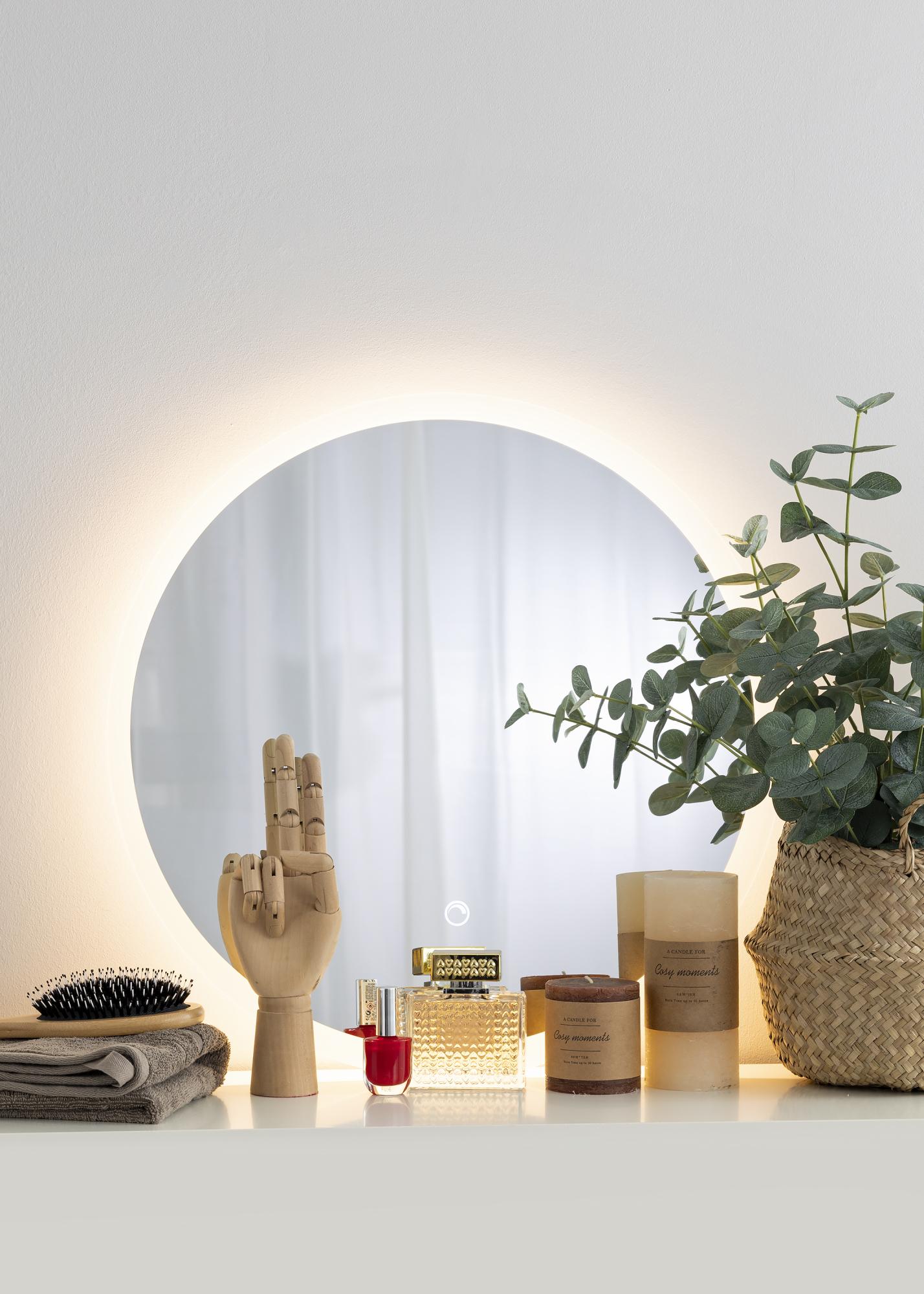 Το LED είναι μια ενεργειακά αποδοτική πηγή φωτός που παρέχει ομοιόμορφο και φυσικό φως - γεγονός που καθιστά αυτόν τον καθρέφτη ιδανικό ως καθρέφτη μπάνιου και ως καθρέφτη μακιγιάζ, ή γιατί όχι ως καθρέφτη χολ! Ο κομψός καθρέφτης έχει διάμετρο 50 cm και είναι μόνο 3 cm λεπτός.