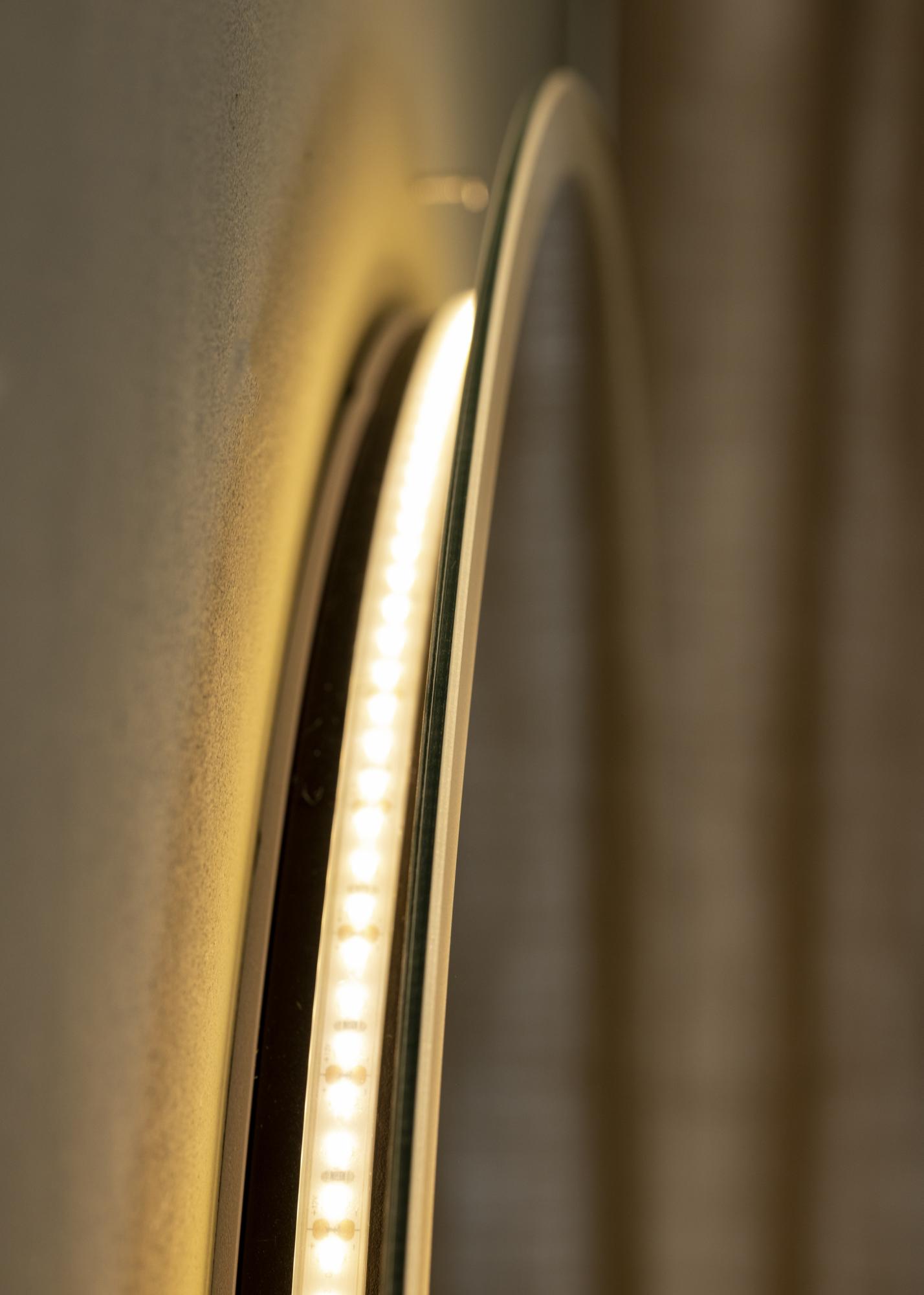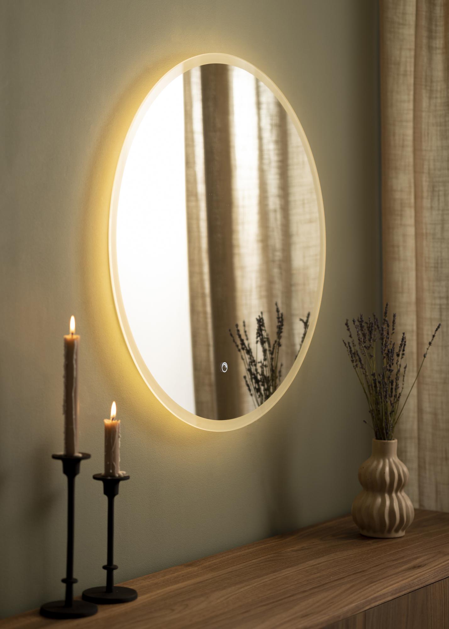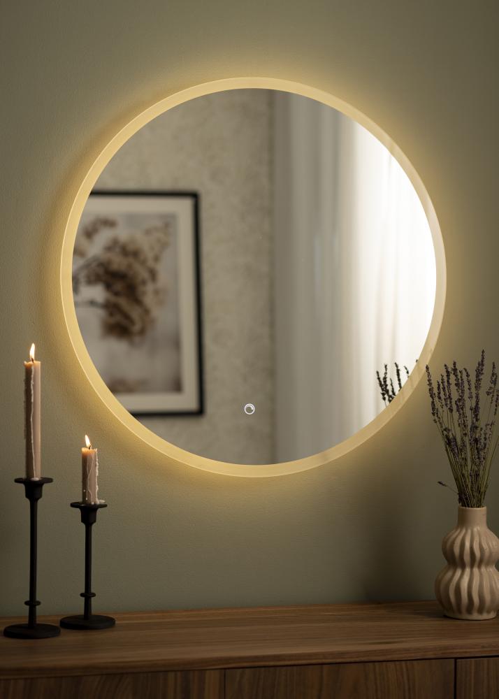 Αυτός είναι ένας κλασικός και κομψός στρογγυλός καθρέφτης μπάνιου. Ο καθρέφτης πλαισιώνεται από ένα ματ περίγραμμα με ενσωματωμένο LED φωτισμό. Ο φωτισμός φωτίζεται πίσω από τον καθρέφτη και προσφέρει έναν ευχάριστο ζεστό λευκό φωτισμό προς τα εμπρός σε 3000K. Ο φωτισμός είναι ρυθμιζόμενος και μπορείτε εύκολα να ρυθμίσετε την ένταση φωτισμού κρατώντας το κουμπί για λίγα δευτερόλεπτα. Την επόμενη φορά που θα ανάψετε τον φωτισμό, ο καθρέφτης θα θυμάται τη φωτεινότητα στην οποία είχε ρυθμιστεί. Ο καθρέφτης διαθέτει αντίστοιχα στηρίγματα τοίχου και είναι εγκεκριμένος για μπάνιο. Ο καθρέφτης μπάνιου προορίζεται για μόνιμη εγκατάσταση και συνδέεται με ένα διακόπτη.