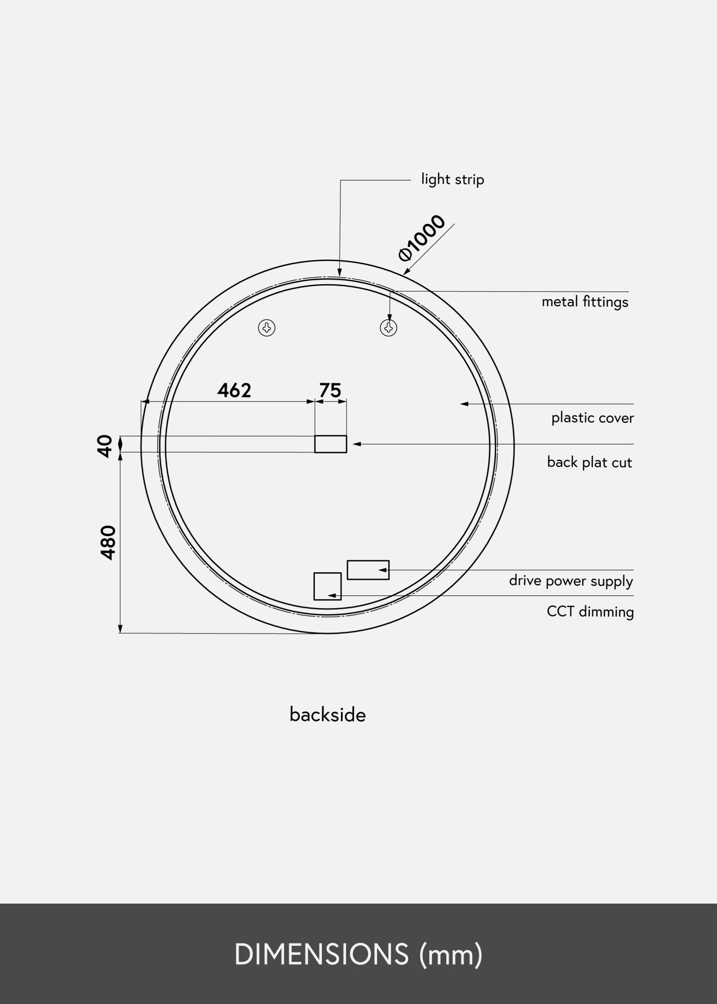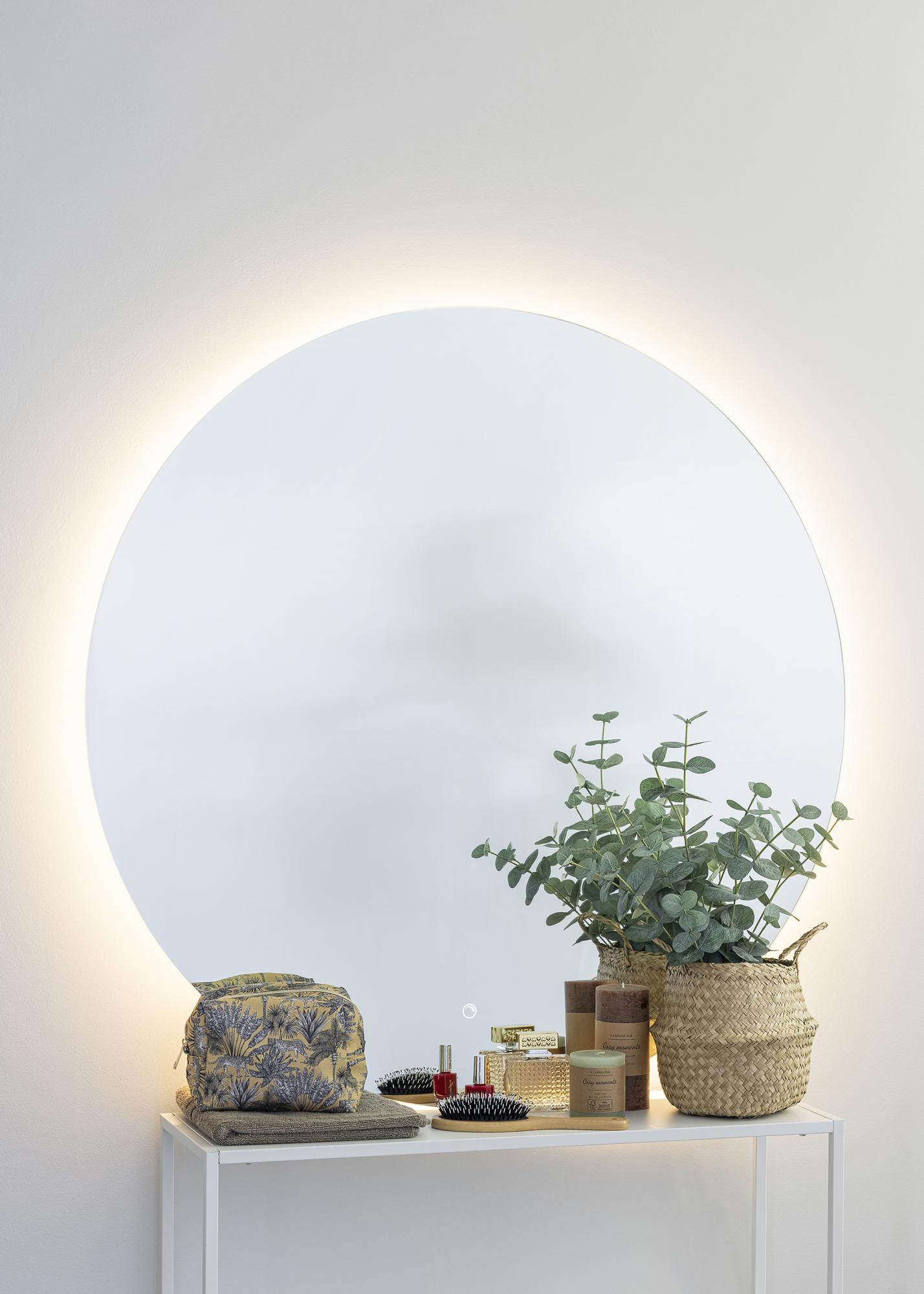 Ο καθρέφτης είναι εγκεκριμένος για το μπάνιο αλλά ο διαχρονικός και κομψός σχεδιασμός του ταιριάζει επίσης ωραία σε άλλους τοίχους του σπιτιού. Ο καθρέφτης έχει διάμετρο 100 cm, έχει μόνο 3 cm βάθος και διαθέτει βάσεις τοίχου. Ο καθρέφτης προορίζεται για σταθερή εγκατάσταση και συνδέεται σε έναν διακόπτη. Για να λειτουργήσει σωστά ο καθρέφτης, πρέπει να συνδεθεί σε ένα κανονικό διακόπτη, όχι σε ρυθμιζόμενο διακόπτη.
