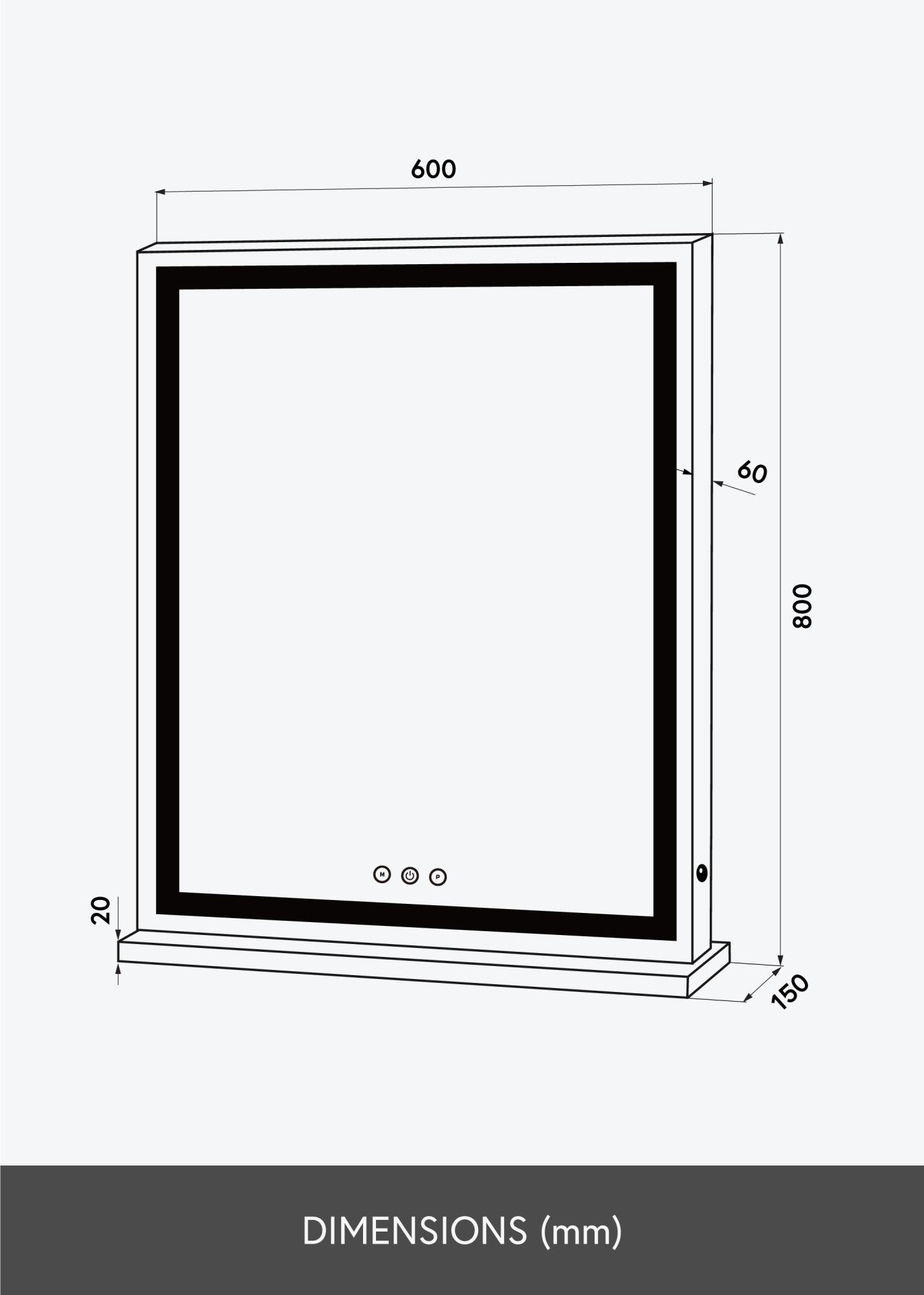 Αυτός ο καθρέφτης μακιγιάζ είναι ένας τέλειος συνδυασμός μινιμαλισμού και μοντέρνας τάσης. Έχει κλασικό σχήμα και μια σύγχρονη LED ταινία που δημιουργεί ένα πλαίσιο γύρω από την επιφάνεια καθρέφτη μεγέθους 80x60 cm. Ο καθρέφτης διαθέτει μια βάση που μπορεί να αφαιρεθεί, ώστε να μπορείτε να επιλέξετε αν θέλετε να στέκεται σε ένα τραπέζι ή να κρέμεται στον τοίχο. Τοποθετείται σε κάθετη θέση.