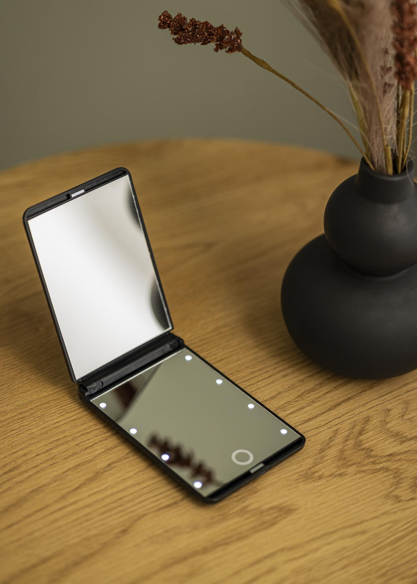 Ο φορητός καθρέφτης μετρά 12x8 cm και ζυγίζει μόλις 136 γραμμάρια, καθιστώντας εύκολη την αποθήκευσή του στην τσέπη, την τσάντα ή το νεσεσέρ. Το μεγεθυντικό γυαλί μαζί με την φωτισμένη επιφάνεια καθρέφτη καθιστούν αυτόν τον καθρέφτη ιδανικό για κοντινές λεπτομέρειες, όπως το τσίμπισμα των φρυδιών ή τη βελτίωση του μακιγιάζ!