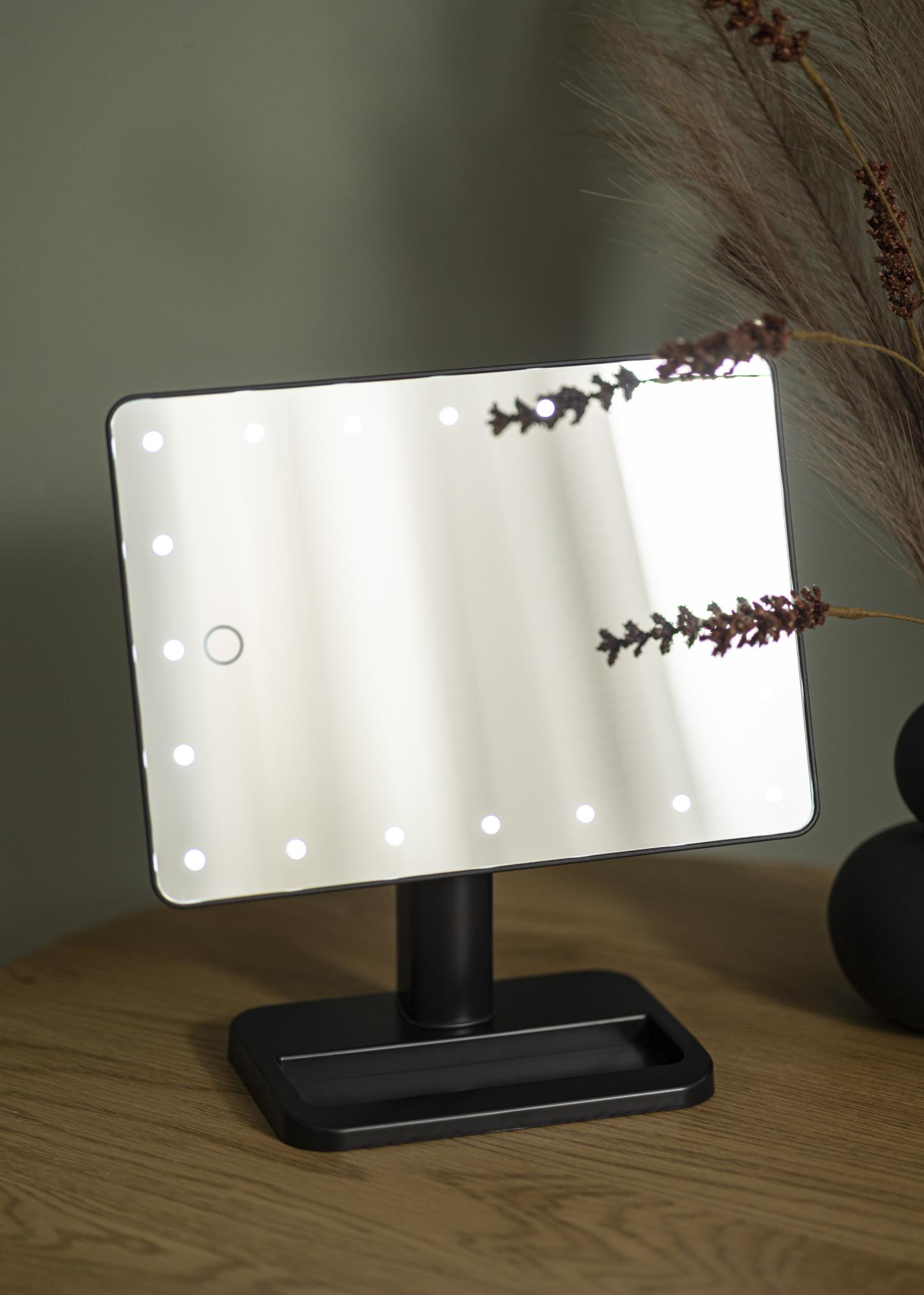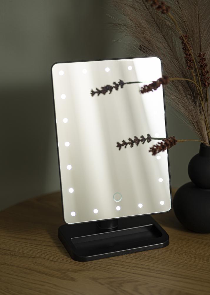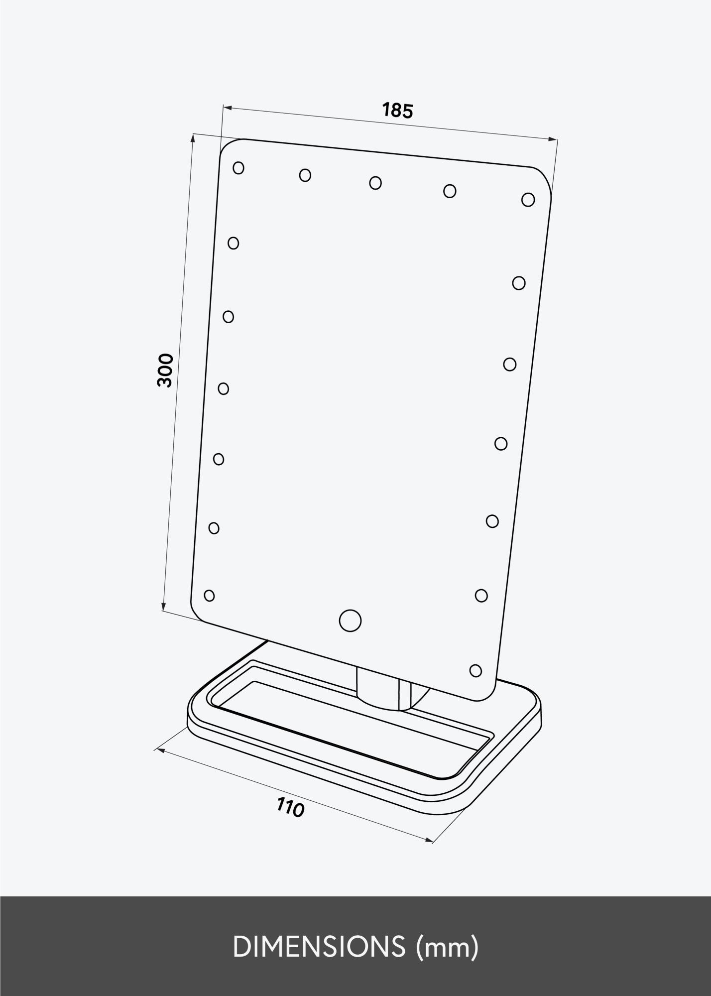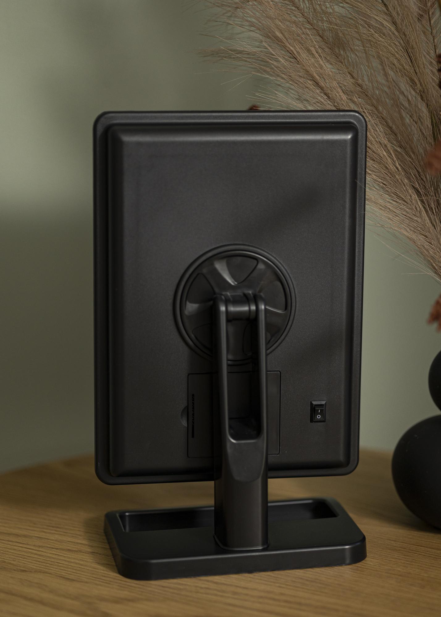 Συμπαγής σχεδιασμός, κομψή εμφάνιση και ομοιόμορφος φωτισμός – το Foot Μαύρο σας προσφέρει όλα όσα επιθυμείτε σε έναν καθρέφτη μακιγιάζ! Η επιφάνεια καθρέφτη 16,5x25 εκ. περιβάλλεται από φωτισμό LED, ο οποίος είναι μια πηγή φωτός που είναι τόσο ενεργειακά αποδοτική όσο και έχει μεγάλη διάρκεια ζωής. Ο καθρέφτης ανάβει μέσω ενός κουμπιού στο πίσω μέρος. Μπορείτε να ρυθμίσετε τη φωτεινότητα του ψυχρού λευκού φωτός κρατώντας πατημένο το κουμπί αφής στην μπροστινή πλευρά του καθρέφτη για μερικά δευτερόλεπτα.