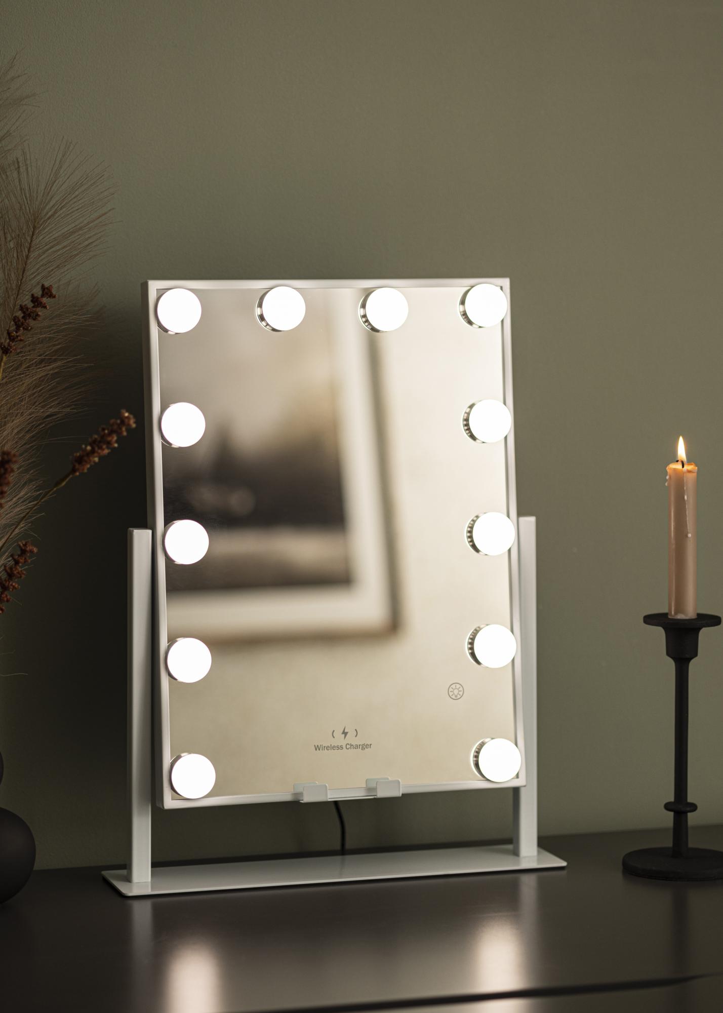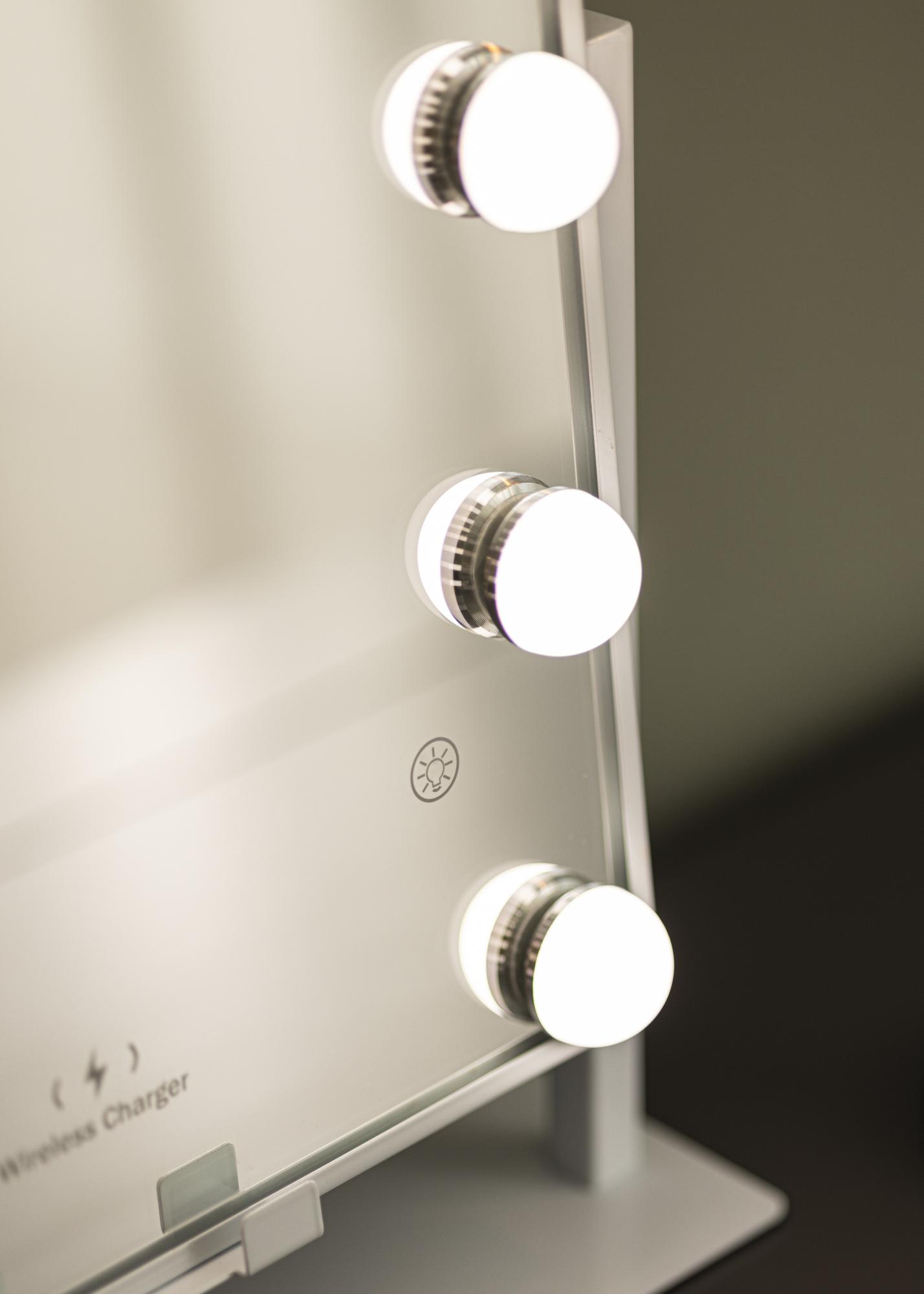 Αυτός είναι ένας κομψός καθρέφτης μακιγιάζ με μια επιπλέον πολυτελή ευχέρεια – υποστηρίζει ασύρματη φόρτιση του smartphone σας! Όταν το φως είναι αναμμένο, τοποθετείτε τη συσκευή σας στην προκαθορισμένη θέση στον καθρέφτη, για να τη φορτίσετε με 5V/2A (10W). Είναι εξαιρετικά πρακτικό για τις πολυάσχολες πρωινές ώρες όταν θέλετε να έχετε το τηλέφωνο κοντά σας ενώ ετοιμάζεστε μπροστά στον καθρέφτη. Η λειτουργία δουλεύει για όλα τα μοντέλα smartphone που υποστηρίζουν ασύρματη φόρτιση.