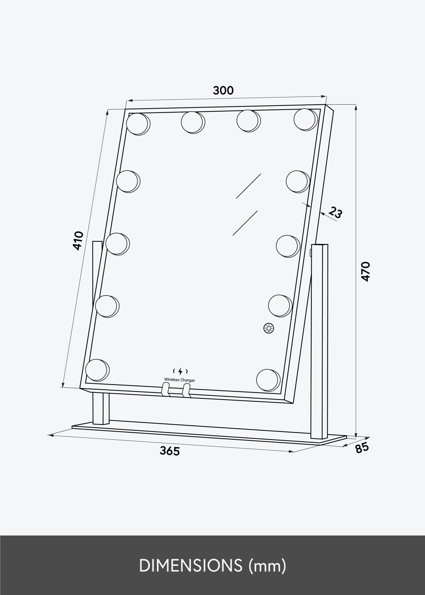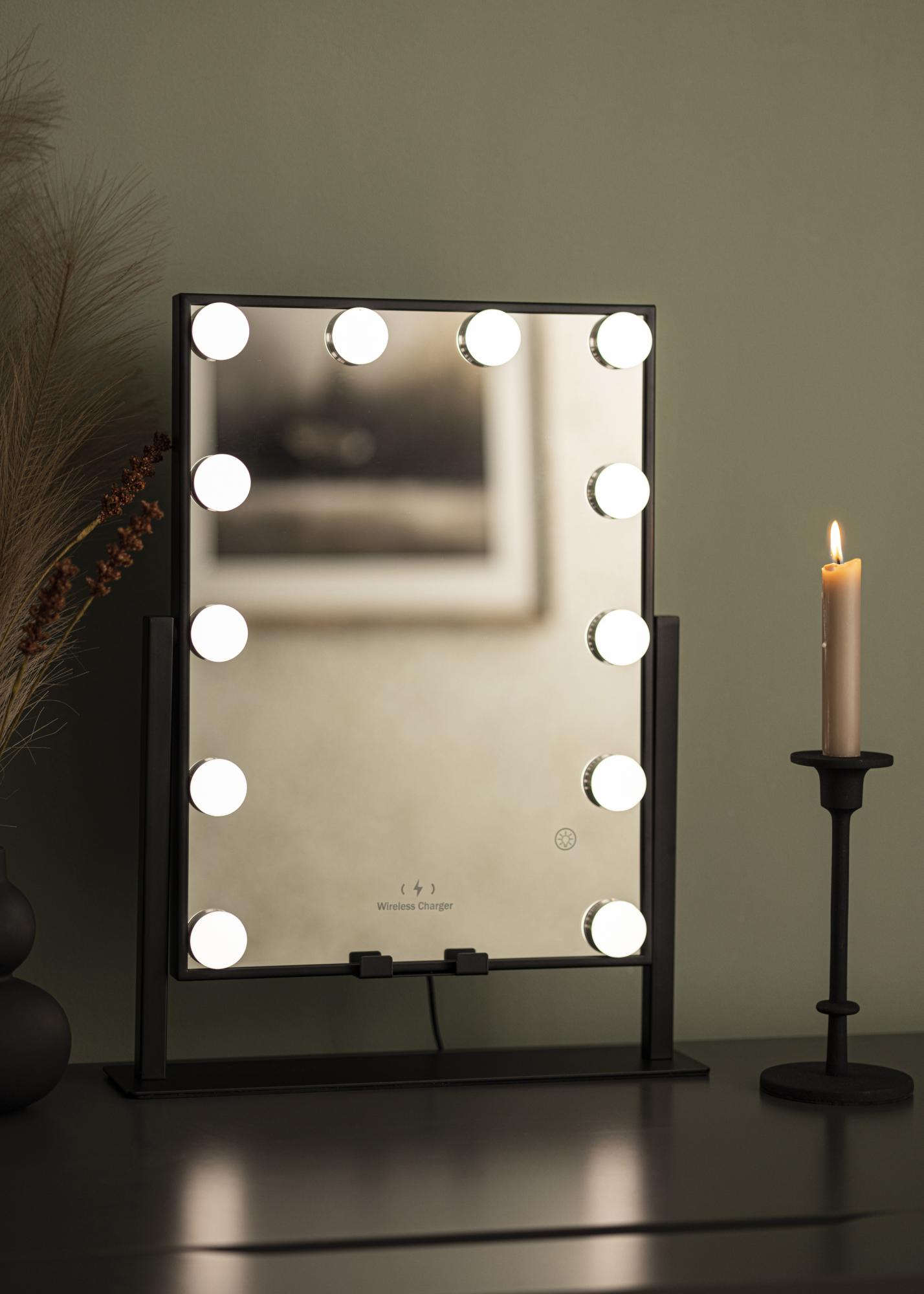 KAILA Καθρέφτης μακιγιάζ Hollywood 12 Μαύρος m. Ασύρματος Φορτιστής 30x41 cm