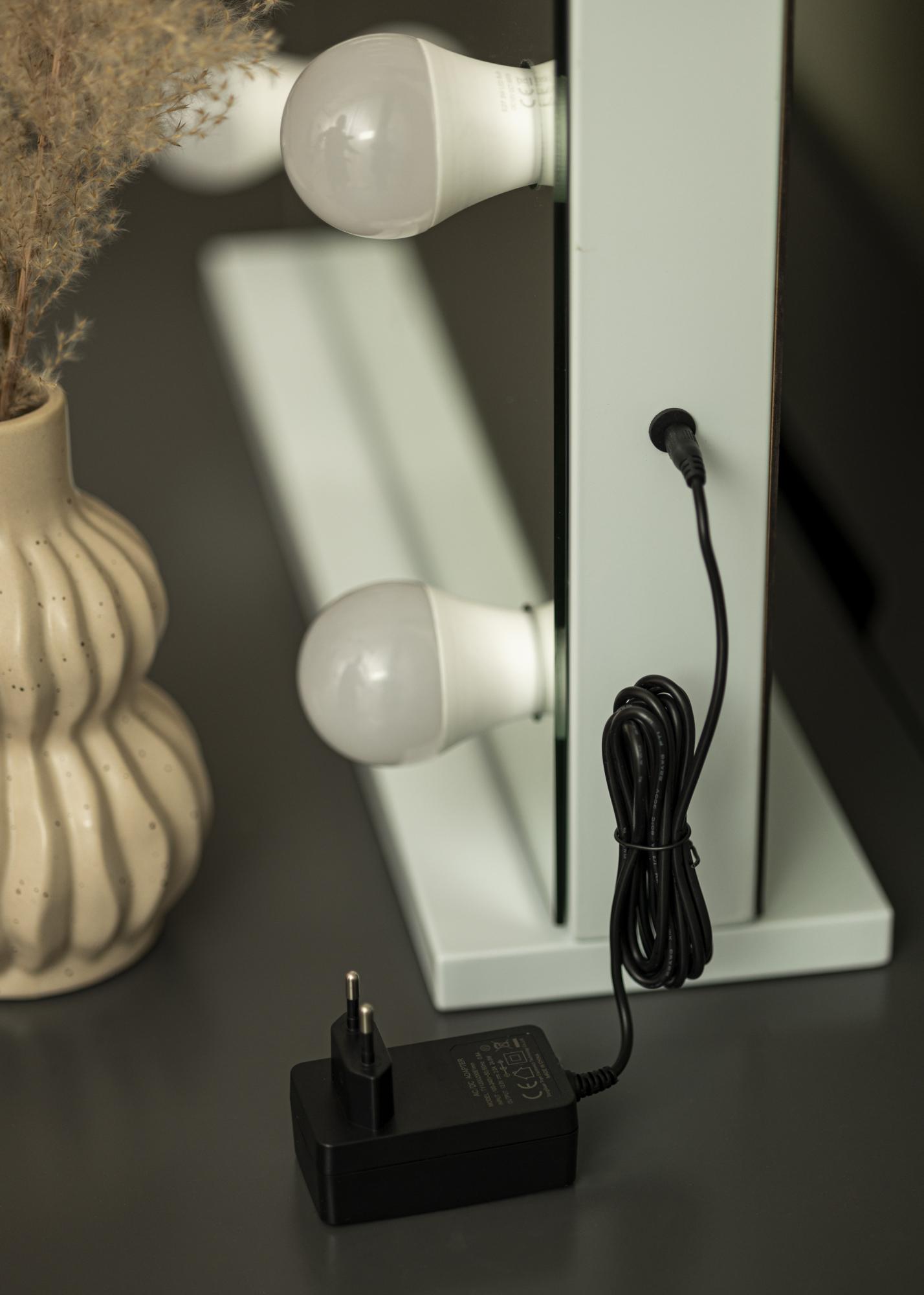 Ο LED φωτισμός του καθρέφτη εκπέμπει ψυχρό λευκό φως. Ανάβεις τον φωτισμό πατώντας το κουμπί στην επιφάνεια του καθρέφτη και αν κρατήσεις πατημένο το κουμπί για μερικά δευτερόλεπτα, μπορείς να ρυθμίσεις τη φωτεινότητα όπως επιθυμείς. Αυτό σου επιτρέπει εύκολα να επιλέξεις αν θέλεις απαλό φωτισμό φόντου ή δυνατότερο φως που θα σε βοηθήσει να εστιάσεις όταν εφαρμόζεις μακιγιάζ.