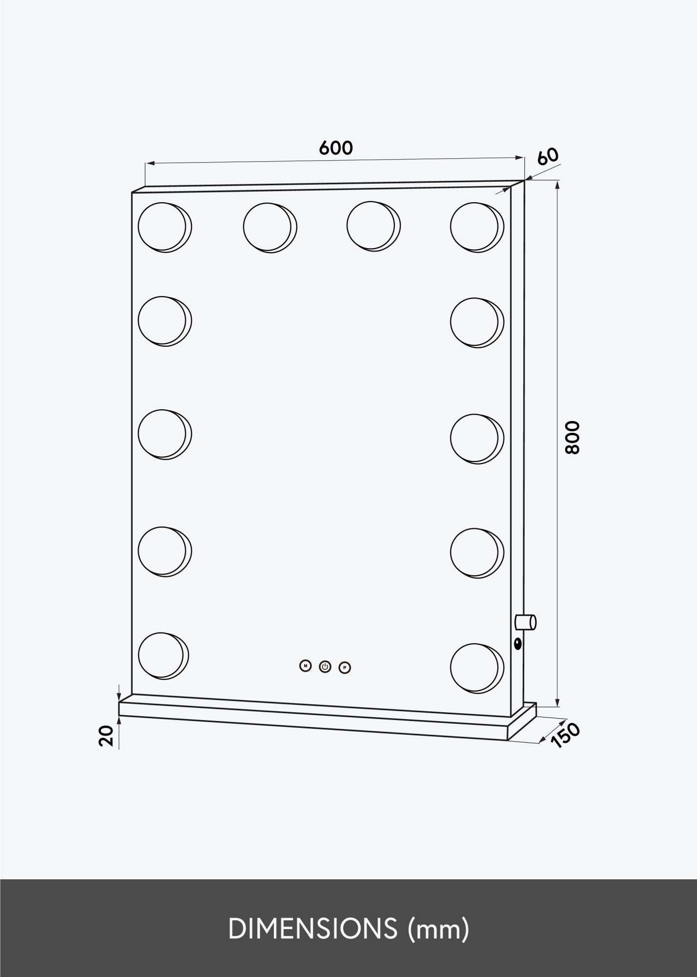 Αυτή είναι ένας καθρέφτης μακιγιάζ σε σχεδιασμό Χόλιγουντ, με κλασικό ορθογώνιο σχήμα, μεγάλη επιφάνεια καθρέφτη 80x60 εκ και 14 LED φώτα τοποθετημένα σαν κομψό πλαίσιο. Μπορεί να τοποθετηθεί σε έπιπλο, για παράδειγμα ως λειτουργικός καθρέφτης στο τραπέζι μακιγιάζ ή ως διακοσμητικό στοιχείο στο σαλόνι. Αν προτιμάς να κρεμάς τον καθρέφτη στον τοίχο με τη βοήθεια των στηριγμάτων στον πίσω μέρος, μπορείς εύκολα να αφαιρέσεις τη βάση του. Ο καθρέφτης συνδέεται με πρίζα.