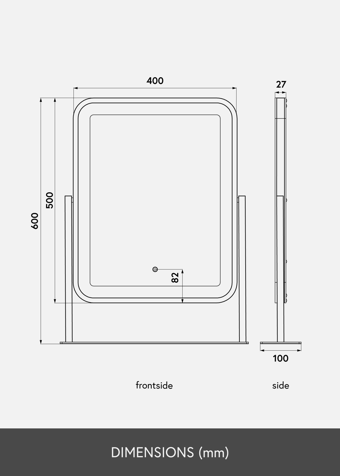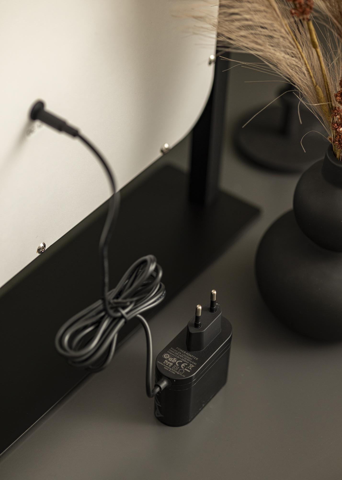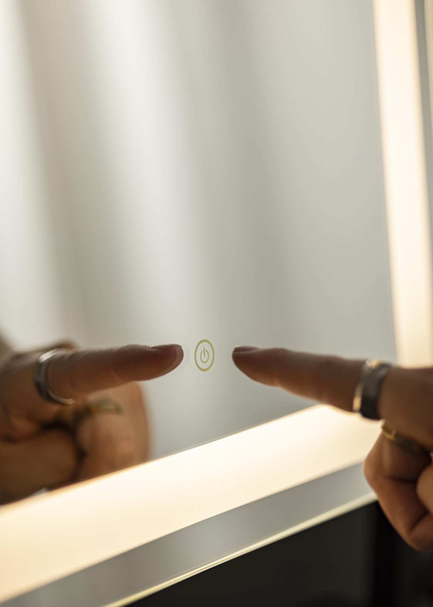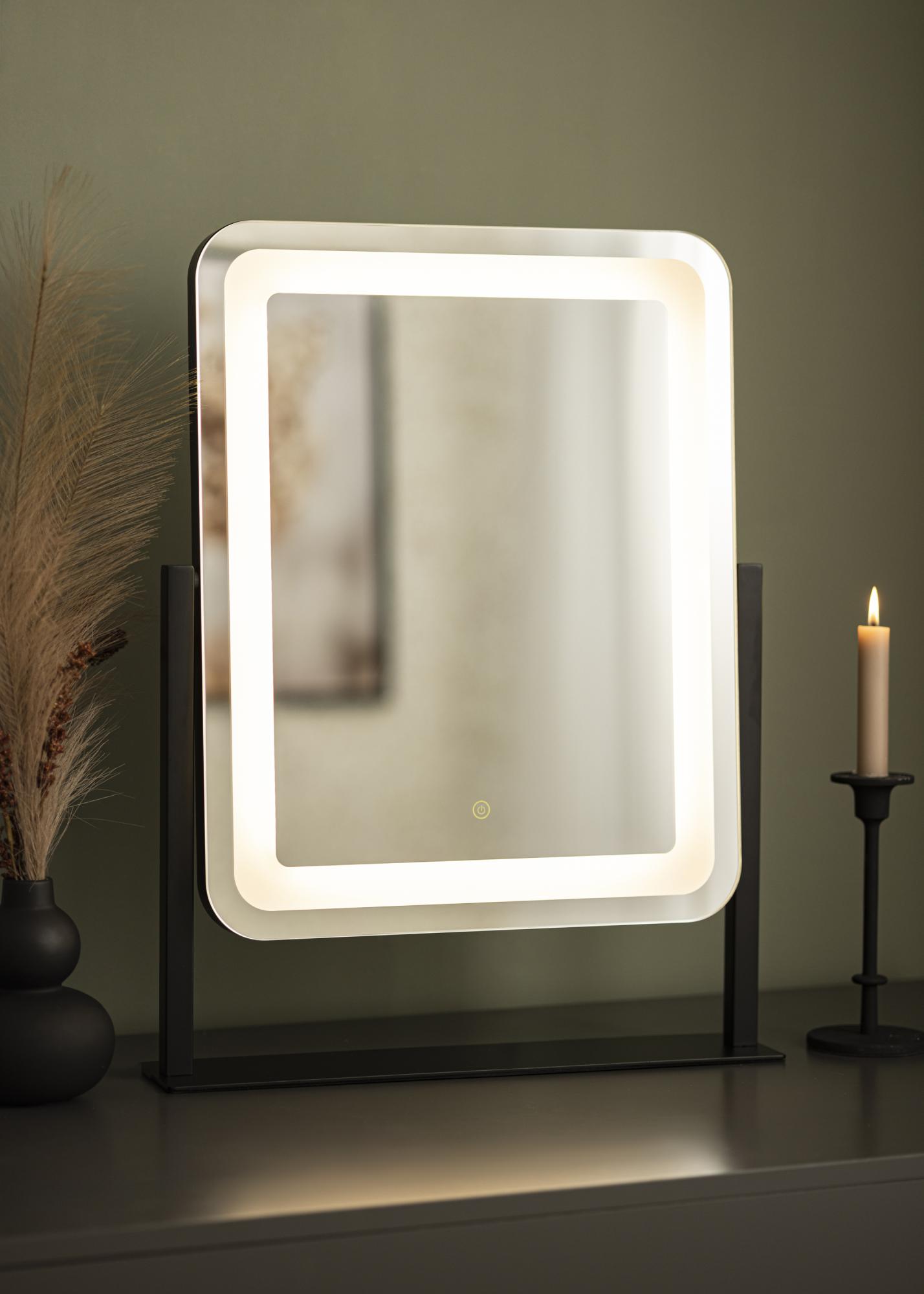 Ένας καθρέφτης μακιγιάζ για εσάς που σας ελκύει ο μοντέρνος σχεδιασμός! Αυτός ο καθρέφτης σε σουηδικό σχεδιασμό από την KAILA έχει μια μοντέρνα μαύρη απόχρωση και ένα παγωμένο περίγραμμα με ενσωματωμένο φωτισμό LED γύρω από το γυαλί του καθρέφτη. Ο φωτισμός LED παρέχει ένα ζεστό λευκό φως στους 3000K που είναι τέλειο για την εφαρμογή μακιγιάζ. Ενεργοποιείτε εύκολα το φωτισμό πατώντας το κουμπί αφής στην οθόνη και ρυθμίζετε τη φωτεινότητα κρατώντας το κουμπί για μερικά δευτερόλεπτα. Ο καθρέφτης μακιγιάζ μετρά 45x60 cm και μπορεί να κλίνει ώστε να μπορείτε εύκολα να αντανακλάτε από διάφορες γωνίες!