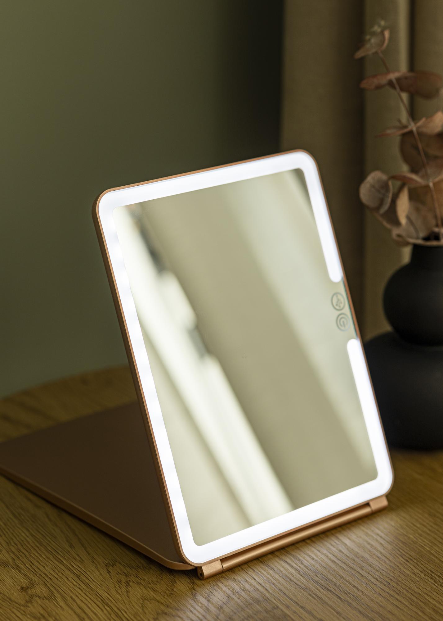 KAILA Καθρέφτης μακιγιάζ Travel LED Φορτιζόμενος Χρυσό ροζ 19x25 cm