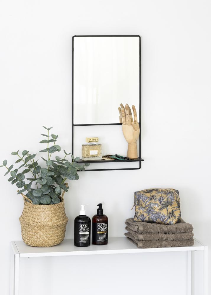 Αυτός ο κομψός επιτοίχιος καθρέφτης με ράφι είναι ένας σουηδικός σχεδιασμός από την KAILA. Ο καθρέφτης έχει μαύρη απόχρωση και είναι κατασκευασμένος από μέταλλο. Η επιφάνεια του καθρέφτη είναι ορθογώνια και περιβάλλεται από ένα μαύρο μεταλλικό περίγραμμα. Στο κάτω μέρος υπάρχει ένα ράφι - ιδανικό για να τοποθετήσετε όμορφη διακόσμηση ή λίγο αποθηκευτικό χώρο για μακιγιάζ! Ο καθρέφτης έχει διαστάσεις 31x60 cm και διαθέτει τοποθέτηση στον τοίχο.