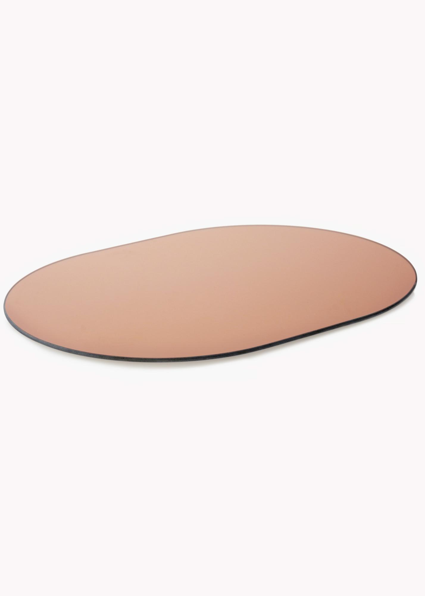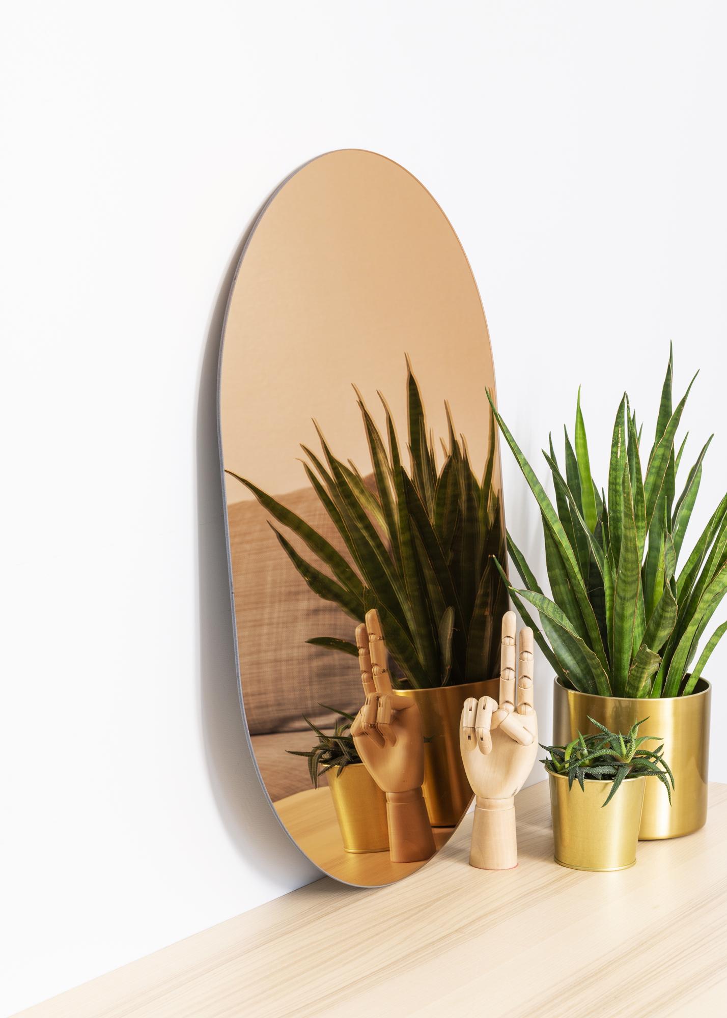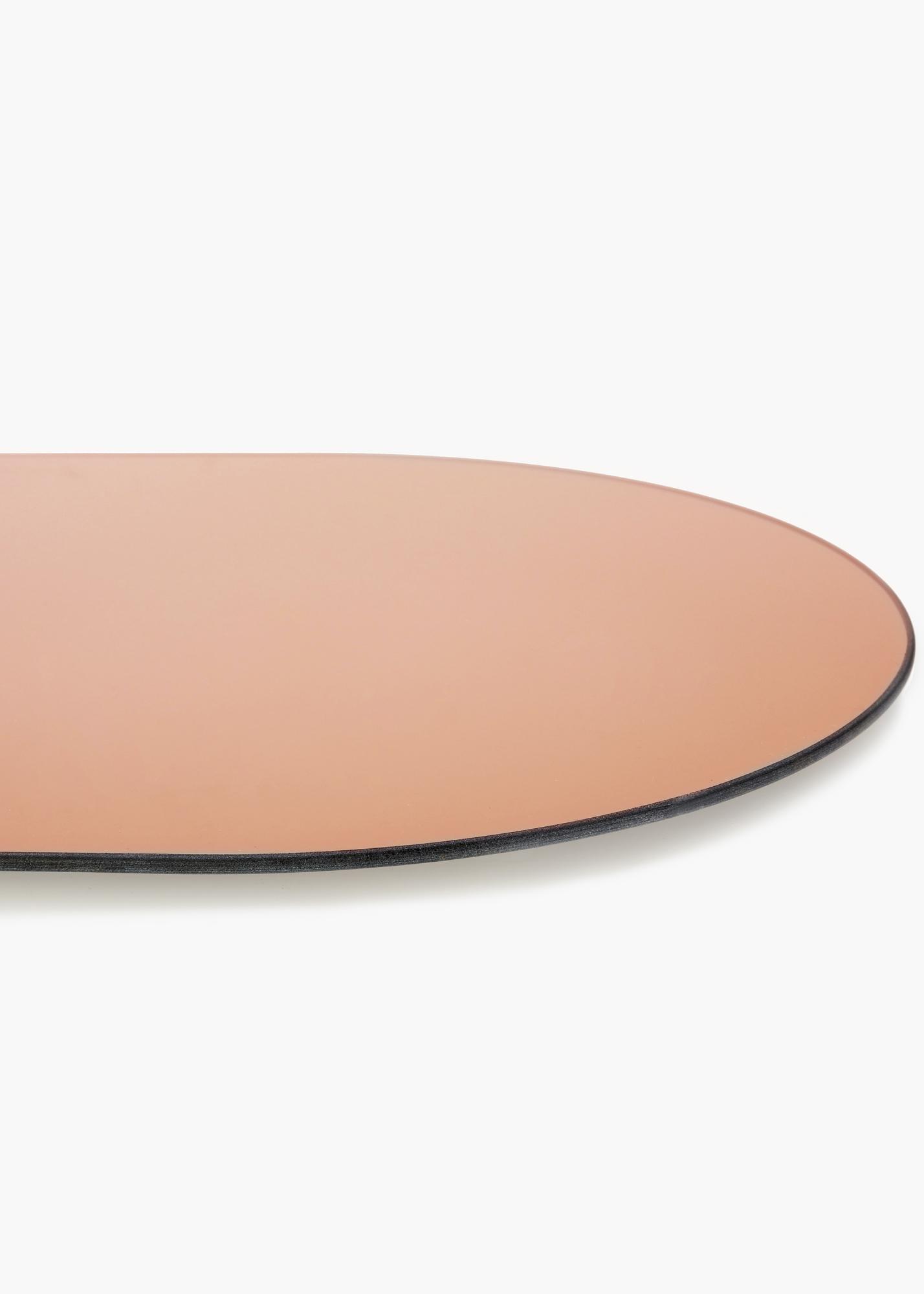 Αυτός ο οβάλ καθρέφτης είναι πολύ λεπτός και δεν έχει πλαίσιο, δίνοντάς του μια μοδάτη και κομψή εμφάνιση. Η μοδάτη αίσθηση ενισχύεται περαιτέρω από το γυαλί του καθρέφτη που έχει τονιστεί σε μια στυλάτη απόχρωση του ροζ χρυσού. Αυτή η λεπτομέρεια καθιστά τον καθρέφτη πολύ εντυπωσιακό, ενώ διατηρεί την κομψή του πρόσοψη.