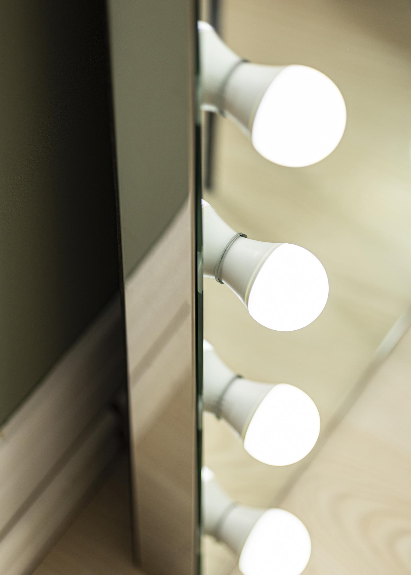 Αυτός ο καθρέφτης διαδρόμου διαθέτει ενσωματωμένο LED φωτισμό με τη μορφή 22 LED λαμπτήρων που πλαισιώνουν όμορφα την επιφάνεια του καθρέφτη και προσδίδουν στον καθρέφτη την πολυτελή του εμφάνιση. Στη μία μακριά πλευρά του καθρέφτη υπάρχει ένας μικρός περιστρεφόμενος διακόπτης που μπορείτε να χρησιμοποιήσετε για να μειώσετε τον φωτισμό σε μια φωτεινότητα που σας ταιριάζει.