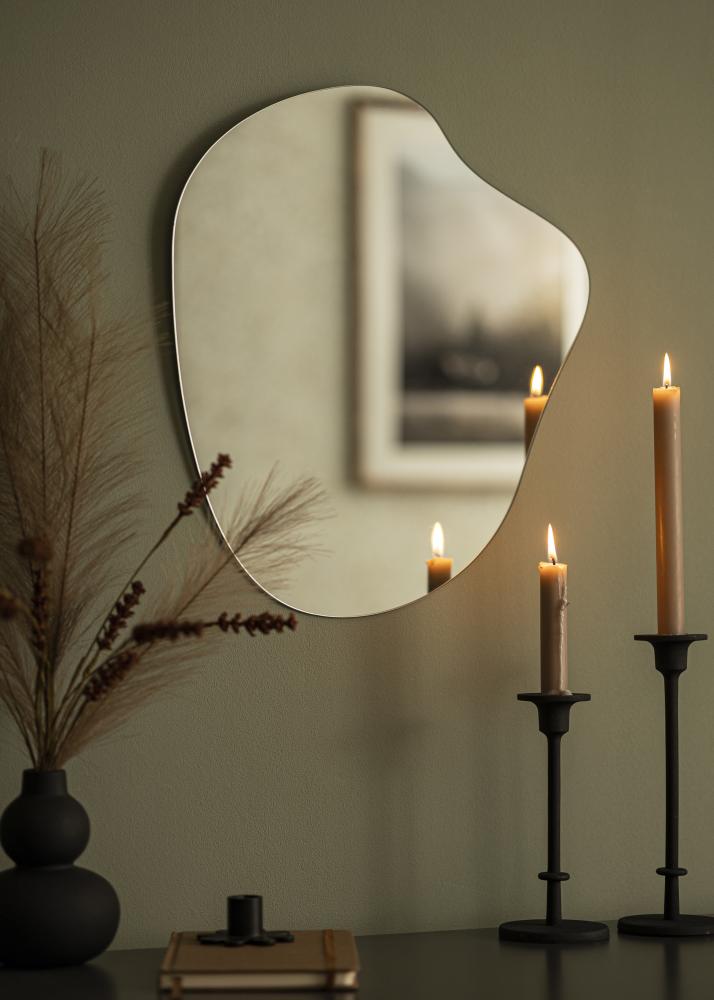Αφήστε αυτόν τον μοντέρνο καθρέφτη τοίχου να γίνει μια συναρπαστική λεπτομέρεια διακόσμησης που αντανακλά όμορφα το φως από τα παράθυρα και τις λάμπες. Το μοναδικό σχήμα και η έλλειψη πλαισίου δίνουν στον καθρέφτη την χαρακτηριστική του εμφάνιση, που είναι τόσο μοντέρνα όσο και μινιμαλιστική.