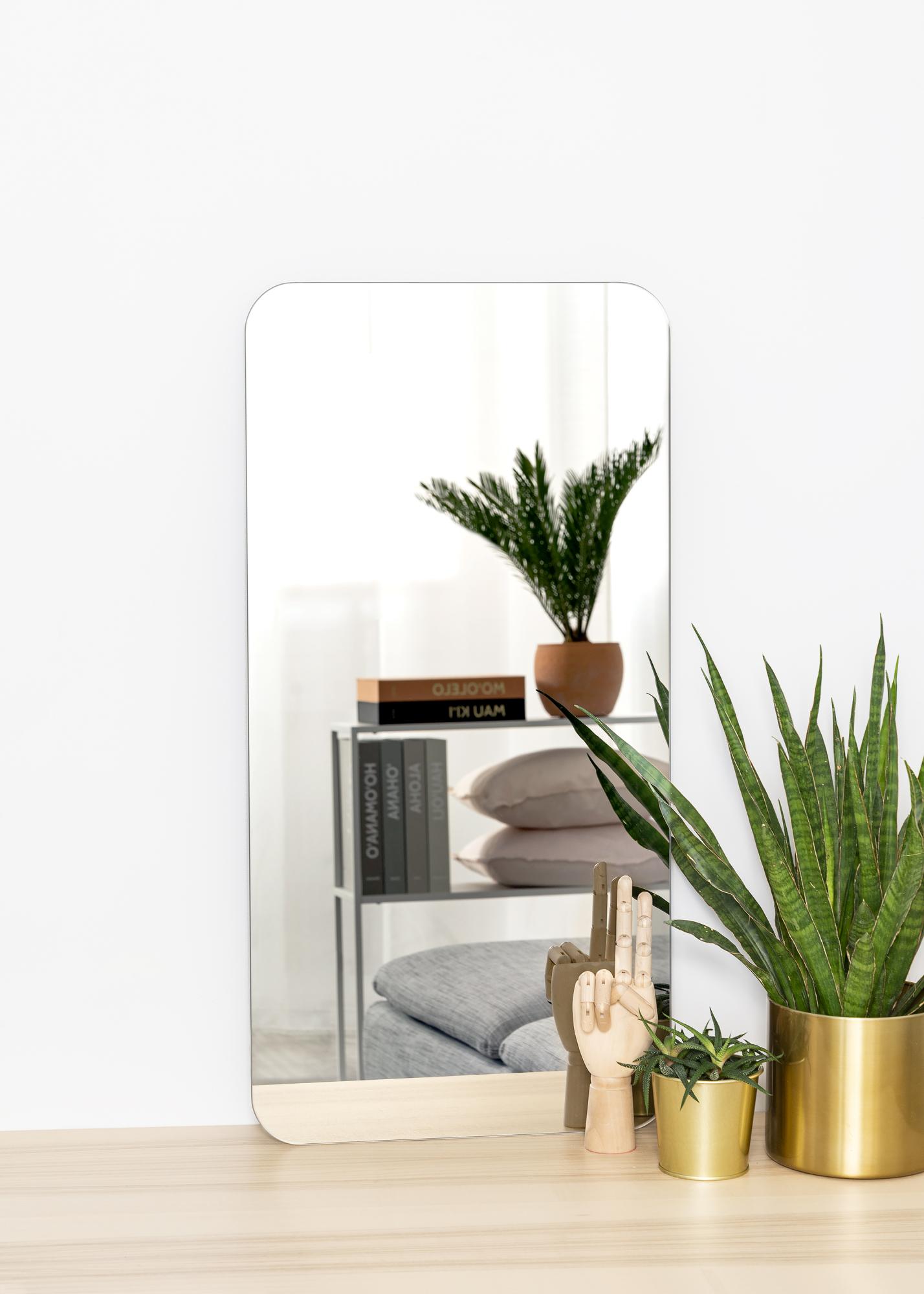 Αυτός είναι ένας ορθογώνιος καθρέφτης με κάτι το ιδιαίτερο: στρογγυλεμένες γωνίες που προσθέτουν απαλότητα και κομψότητα στο σύνολο. Ο καθρέφτης είναι επίσης πολύ λεπτός και δεν έχει πλαίσιο, γεγονός που του προσδίδει μια μινιμαλιστική αίσθηση.