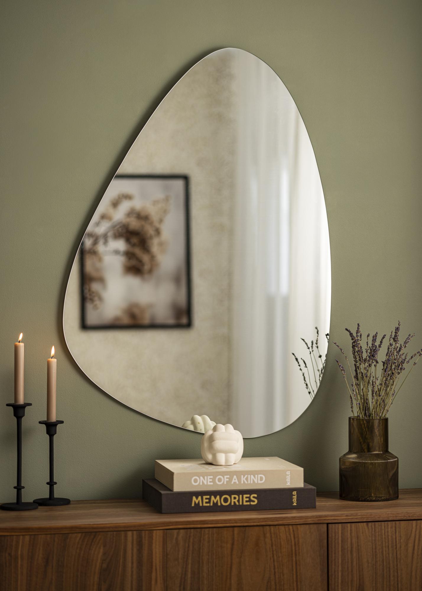 Αυτός ο καθρέφτης έχει μια μοντέρνα και ασύμμετρη μορφή – σχεδόν σαν ένα αυγό. Ένα απαλό και κομψό σχήμα που δημιουργεί μια ελαφριά και φιλόξενη ατμόσφαιρα στο δωμάτιο που βρίσκεται. Ο καθρέφτης είναι επίσης πολύ λεπτός, γεγονός που ενισχύει την κομψή και εκλεπτυσμένη εμφάνισή του.
