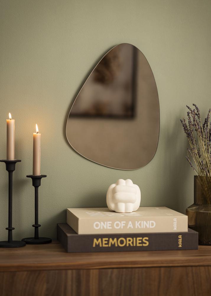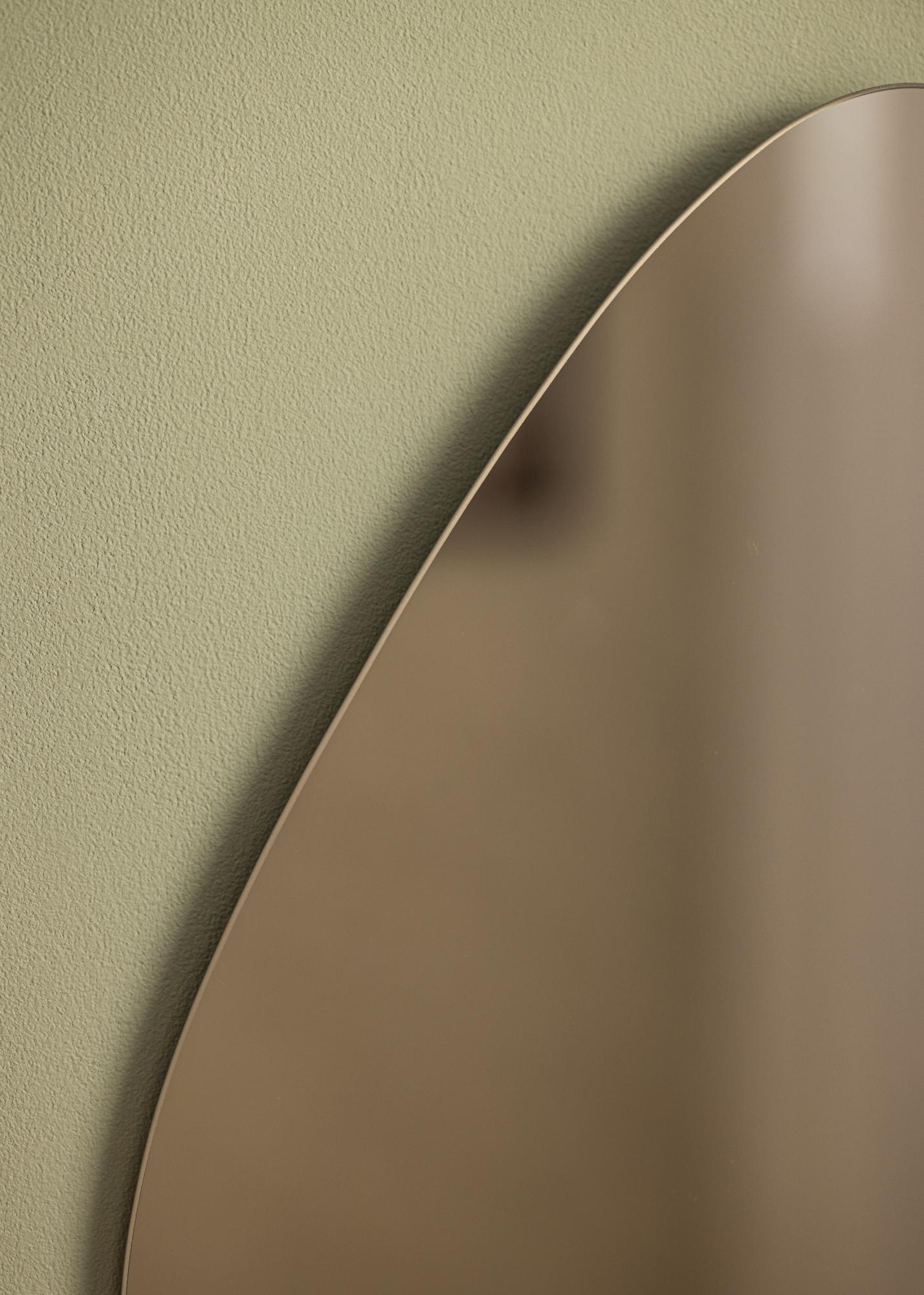 Αυτός ο ασύμμετρος καθρέφτης αποτελεί μια πραγματικά κομψή και μοντέρνα διακοσμητική λεπτομέρεια στον χώρο σας! Εκτός από το ενδιαφέρον σχέδιο σε σχήμα αυγού, αυτός ο καθρέφτης διαθέτει επίσης ένα κομψό καθρέφτη με μπρονζέ απόχρωση που ενισχύει περαιτέρω τη σύγχρονη εμφάνιση και που αρμονίζεται όμορφα με πολλά διαφορετικά χρωματικά σχήματα. Το μαλακό σχήμα σε συνδυασμό με το γεγονός ότι ο καθρέφτης είναι πολύ λεπτός και δεν έχει πλαίσιο, του δίνουν μια σπάνια κομψή και λιτή αίσθηση. Ιδανικό ως λειτουργική και μοντέρνα διακόσμηση τοίχου στο σαλόνι, το χωλ ή το υπνοδωμάτιο.