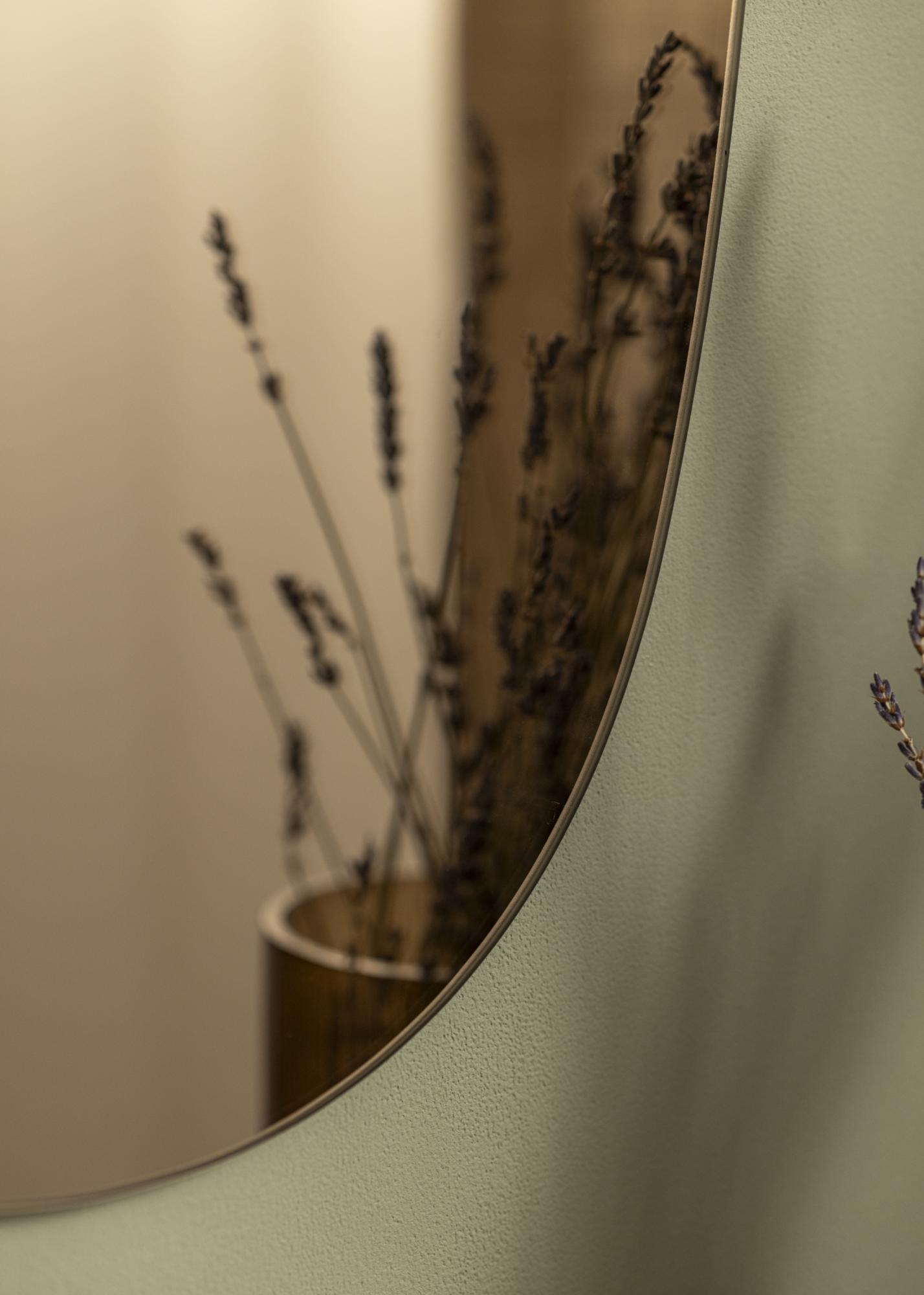 Αυτός ο ασύμμετρος καθρέφτης αποτελεί μια πραγματικά κομψή και μοντέρνα διακοσμητική λεπτομέρεια στο σπίτι σας! Εκτός από τον ενδιαφέροντα σχέδιο σε σχήμα αυγού, αυτός ο καθρέφτης διαθέτει επίσης ένα κομψό γυαλί καθρέφτη σε απόχρωση μπρονζέ που ενισχύει περαιτέρω τη σύγχρονη εμφάνιση και εναρμονίζεται όμορφα με πολλά διαφορετικά χρωματικά σχήματα. Το απαλό σχήμα σε συνδυασμό με το γεγονός ότι ο καθρέφτης είναι πολύ λεπτός και δεν έχει καμία κορνίζα, δίνει στον καθρέφτη μια σπάνια κομψή και λεπτή αίσθηση. Ιδανικός ως λειτουργική και μοντέρνα διακόσμηση τοίχου στο σαλόνι, τον διάδρομο ή την κρεβατοκάμαρα.