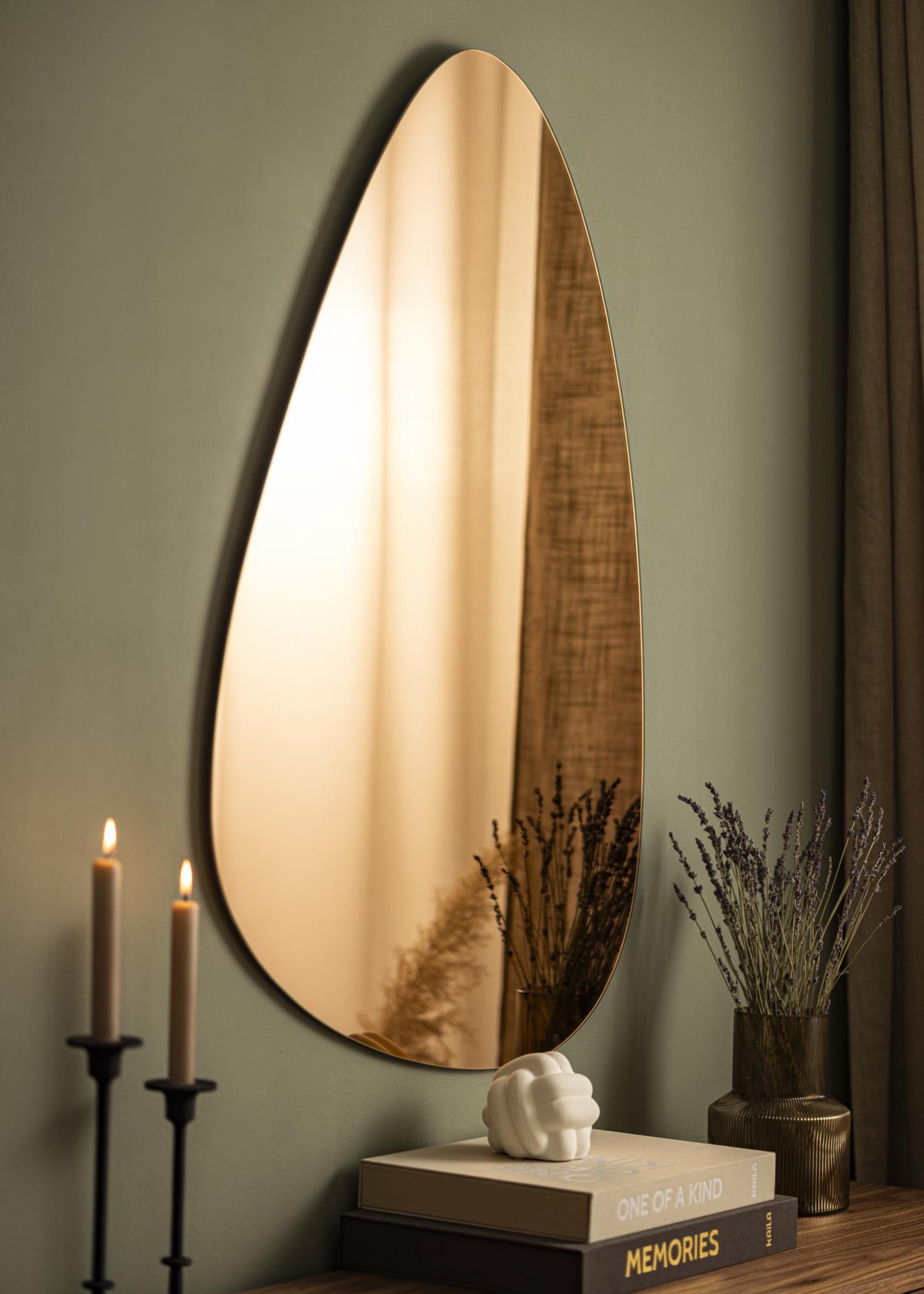 Αυτός ο ασύμμετρος καθρέφτης κάνει μια μοντέρνα εντύπωση στο σπίτι σας, και με τις γενναιόδωρες διαστάσεις του 70x100 cm αφήνει πράγματι μια ισχυρή εντύπωση! Ο καθρέφτης διαθέτει επίσης ένα τζάμι καθρέφτη σε ροζ-χρυσαφί τόνο που ενισχύει τον εντυπωσιακό σχεδιασμό του καθρέφτη και τον χαρακτήρα του. Επιπλέον, αυτός ο καθρέφτης είναι πολύ λεπτός, γεγονός που του προσδίδει μια κομψή εμφάνιση και τον κάνει να φαίνεται ακόμα πιο σύγχρονος.