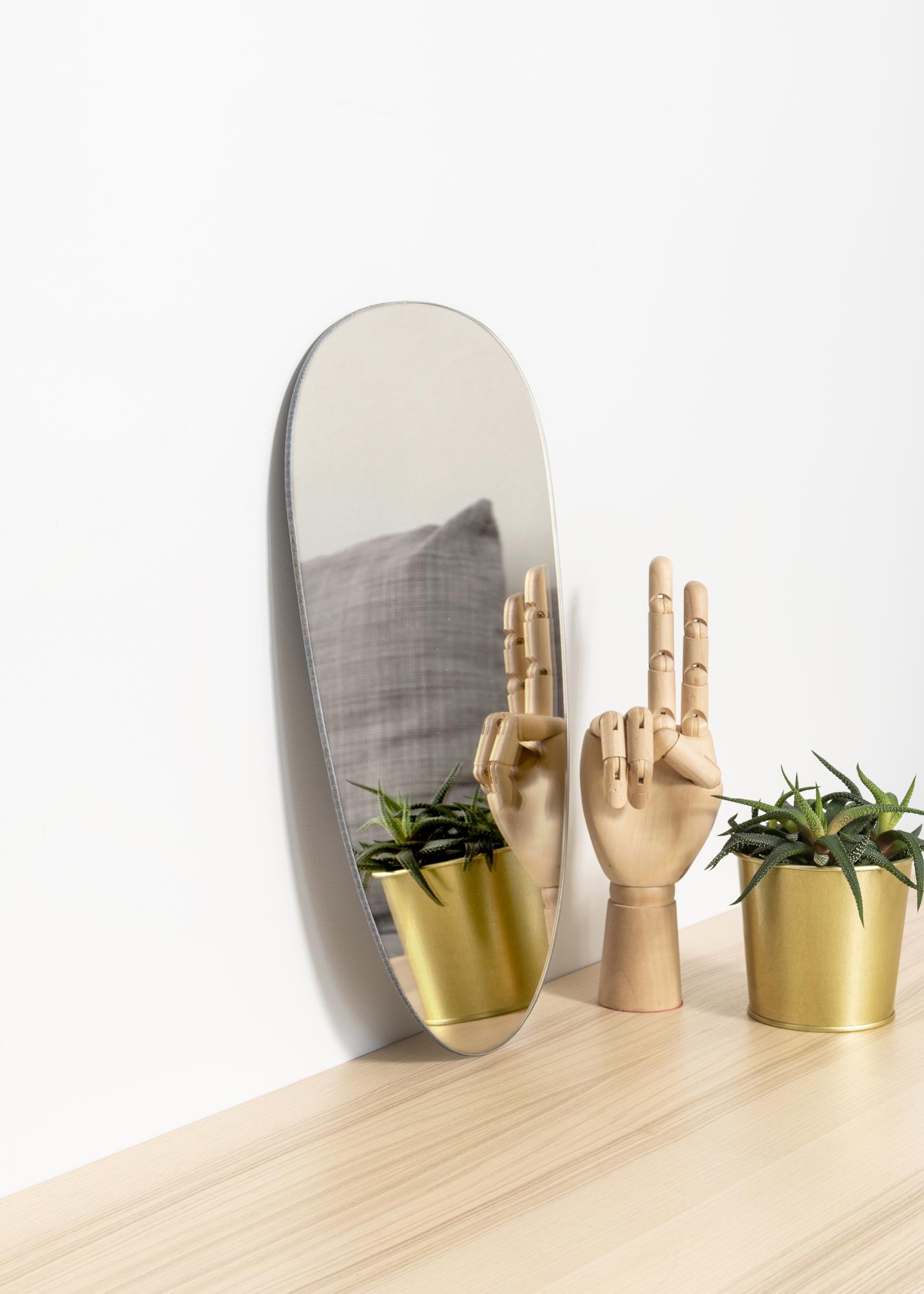 Ένας καθρέφτης με μια συναρπαστική και λίγο διαφορετική μορφή δημιουργεί μια μοντέρνα εντύπωση στο σπίτι σας! Αυτός ο ασύμμετρος καθρέφτης είναι επιπλέον μόνο 4 χιλιοστά λεπτός και δεν έχει πλαίσιο, πράγμα που του δίνει μια πολύ κομψή και εκλεπτυσμένη εμφάνιση.