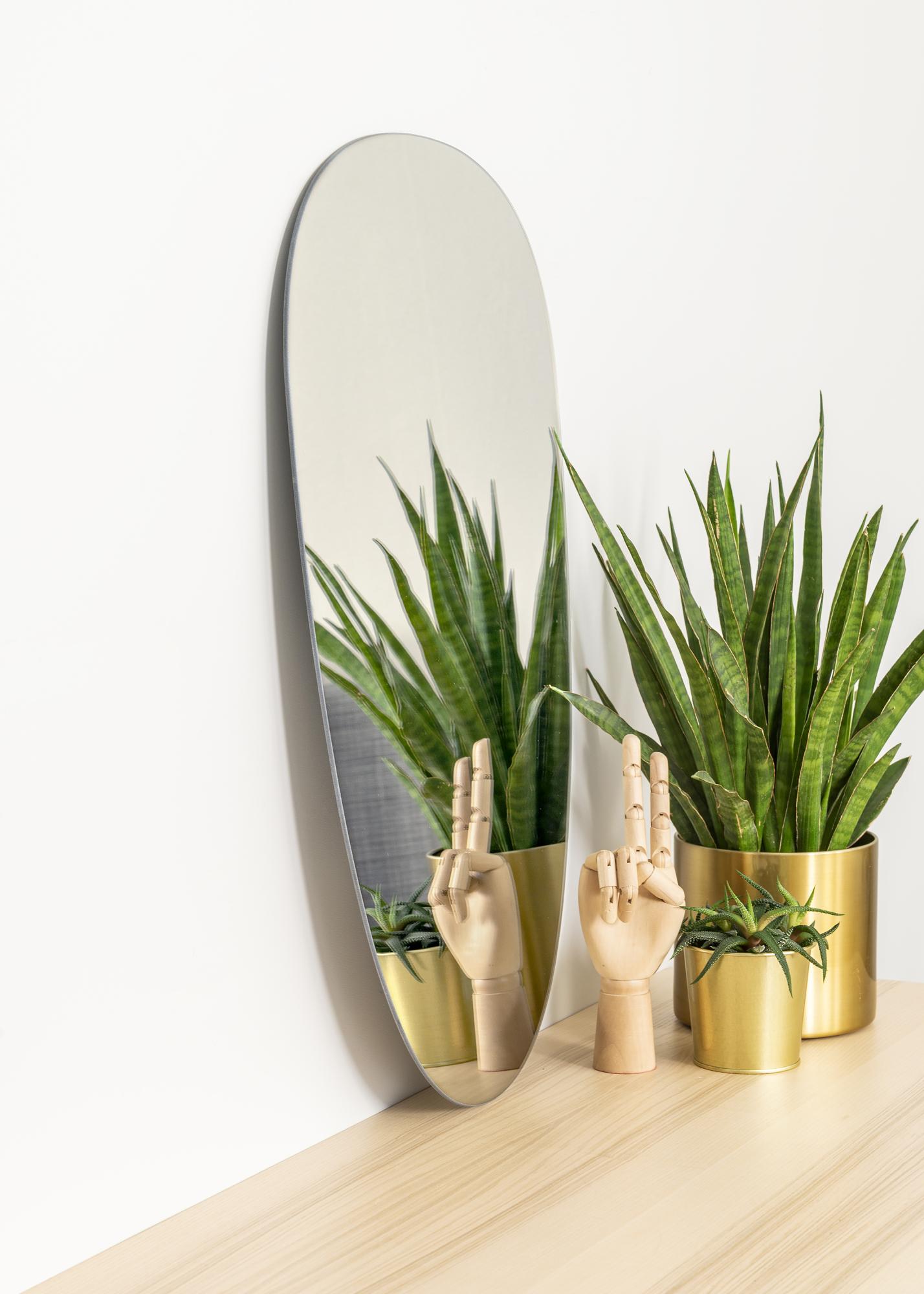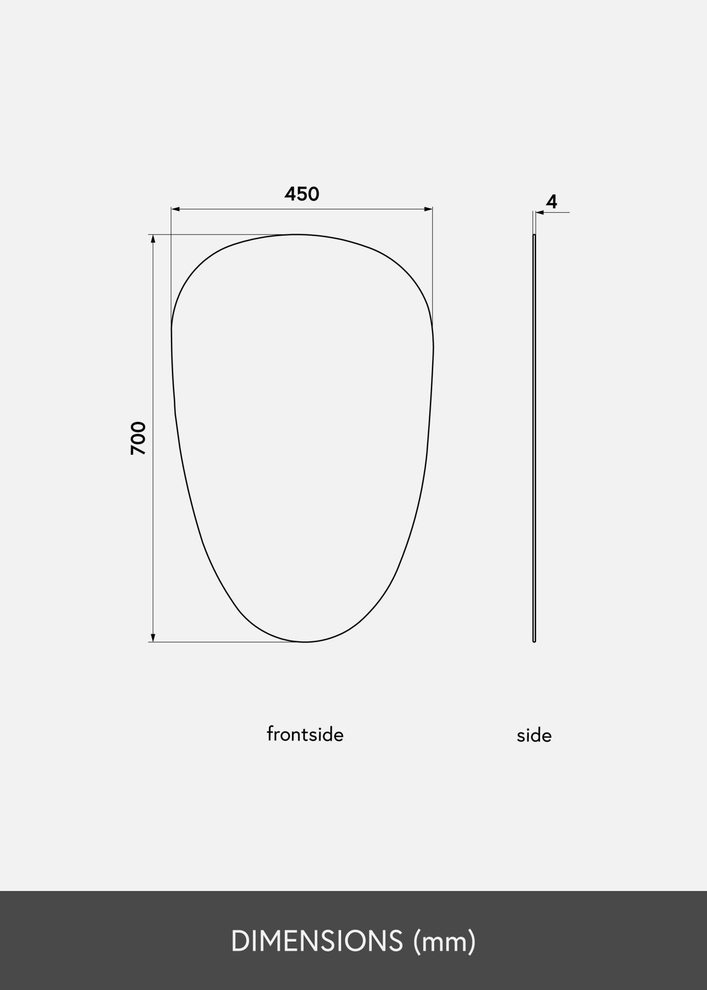 Ένας κομψός και ενδιαφέρων καθρέφτης όπως αυτός αποτελεί μια μοντέρνα προσθήκη στη διακόσμηση του σπιτιού σας! Ο καθρέφτης έχει ένα απαλό και ασύμμετρο σχήμα που μπορεί να περιγραφεί καλύτερα ως ανώμαλα οβάλ. Ο καθρέφτης είναι επιπλέον πολύ λεπτός και δεν έχει πλαίσιο, γεγονός που ενισχύει περαιτέρω την κομψή εμφάνιση του καθρέφτη.